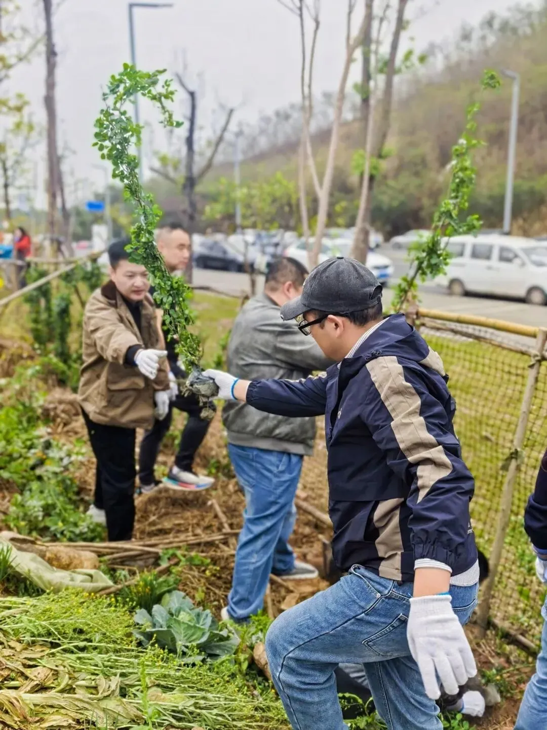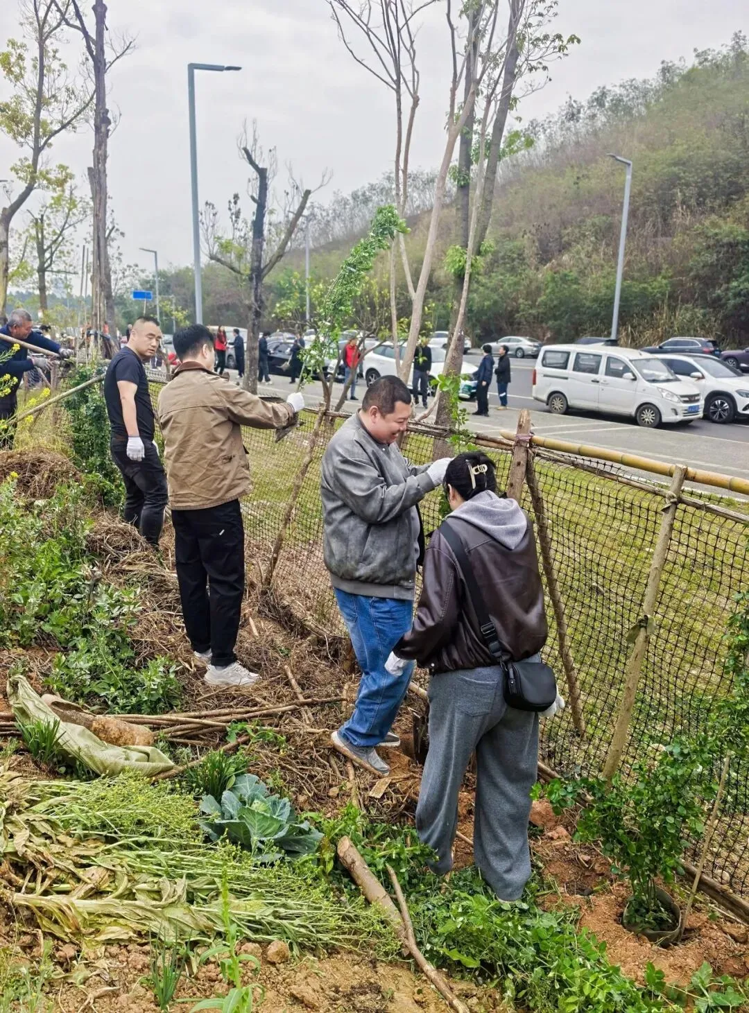 活动现场,在认真聆听种植区域划分及种植要求后,各会员单位代表有序领取锄头、水桶、扎带等工具。