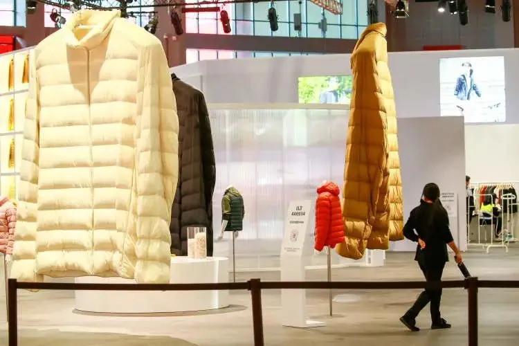 这是进博会现场在空中展示的“巨型轻羽绒”,让中国消费者近距离感受到了服装的创新科技。