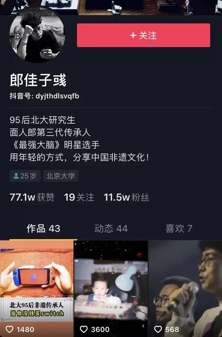从蜘蛛侠到《哪吒之魔童降世》,从《少年的你》到Billie Eilish,郎佳子彧在抖音发布的以面塑为主题的44条视频,已经收获超过77万点赞。