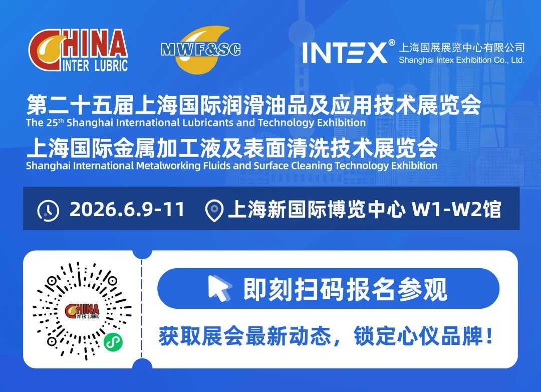 第25届上海国际润滑油品及应用技术展览会、上海国际金属加工液及表面清洗技术展览会(Inter Lubric China, MWF&SC 2026)将于6月9-11日在上海新国际博览中心W1-W2馆盛大举行,展示面积将突破25,000㎡,预计将吸引350+国内外优质品牌参展,打造高规格、高效能的润滑油行业展示、交流与贸易平台。
