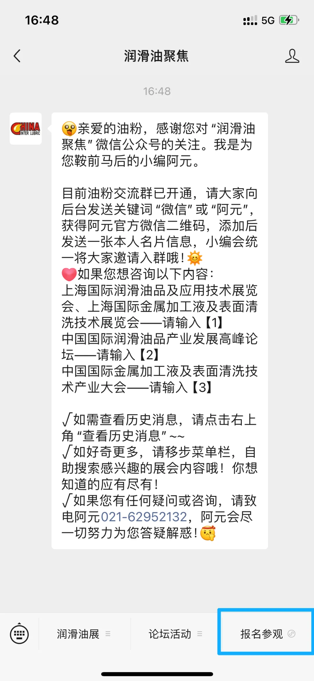 点击公众号底部菜单栏【报名参观】