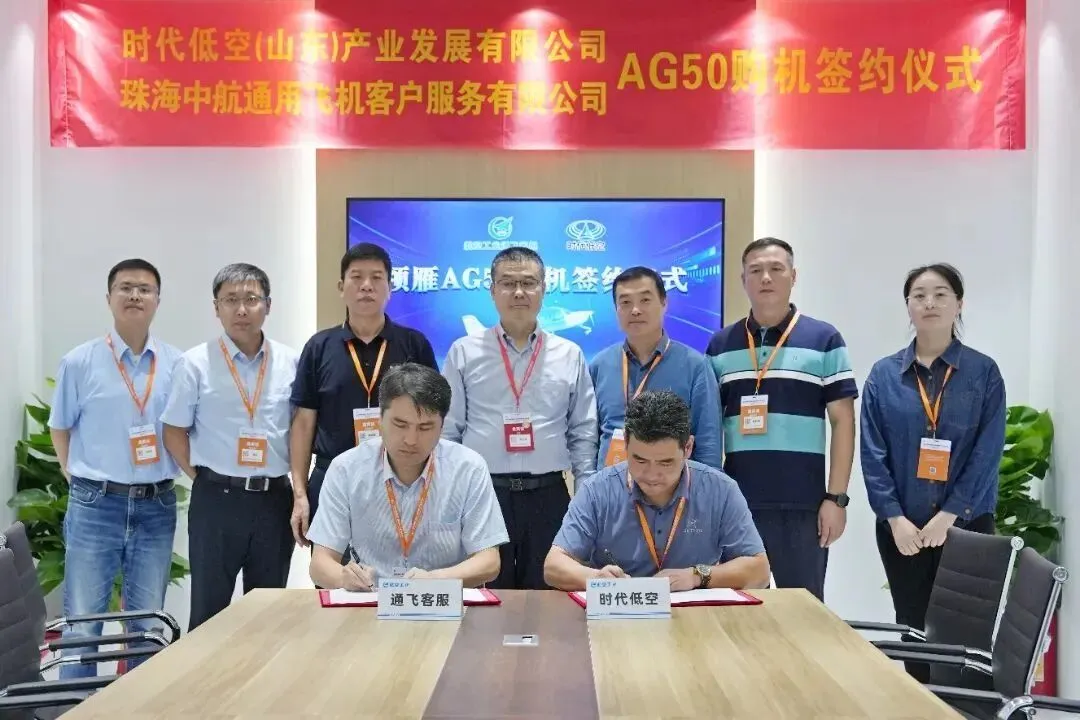 开幕式当天,航空工业通飞与山东时代低空公司签署5架AG50销售合同;在低空经济发展论坛上,航空工业通飞副总经理李东涛作题为《发展低空经济、促进消费升级,助力中国式现代化高质量发展》主旨演讲,针对当前低空空域管理改革政策环境和低空经济领域发展新趋势,与关心低空经济发展的政府领导、行业专家、企业界人士共同探讨通航产业发展之道。