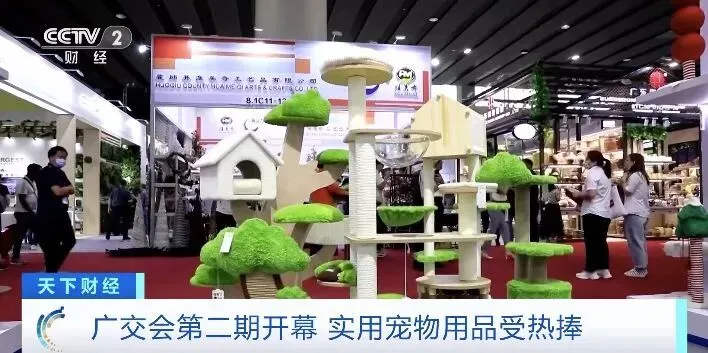 在广交会宠物展区,这款树屋造型猫爬架吸引了不少客商。