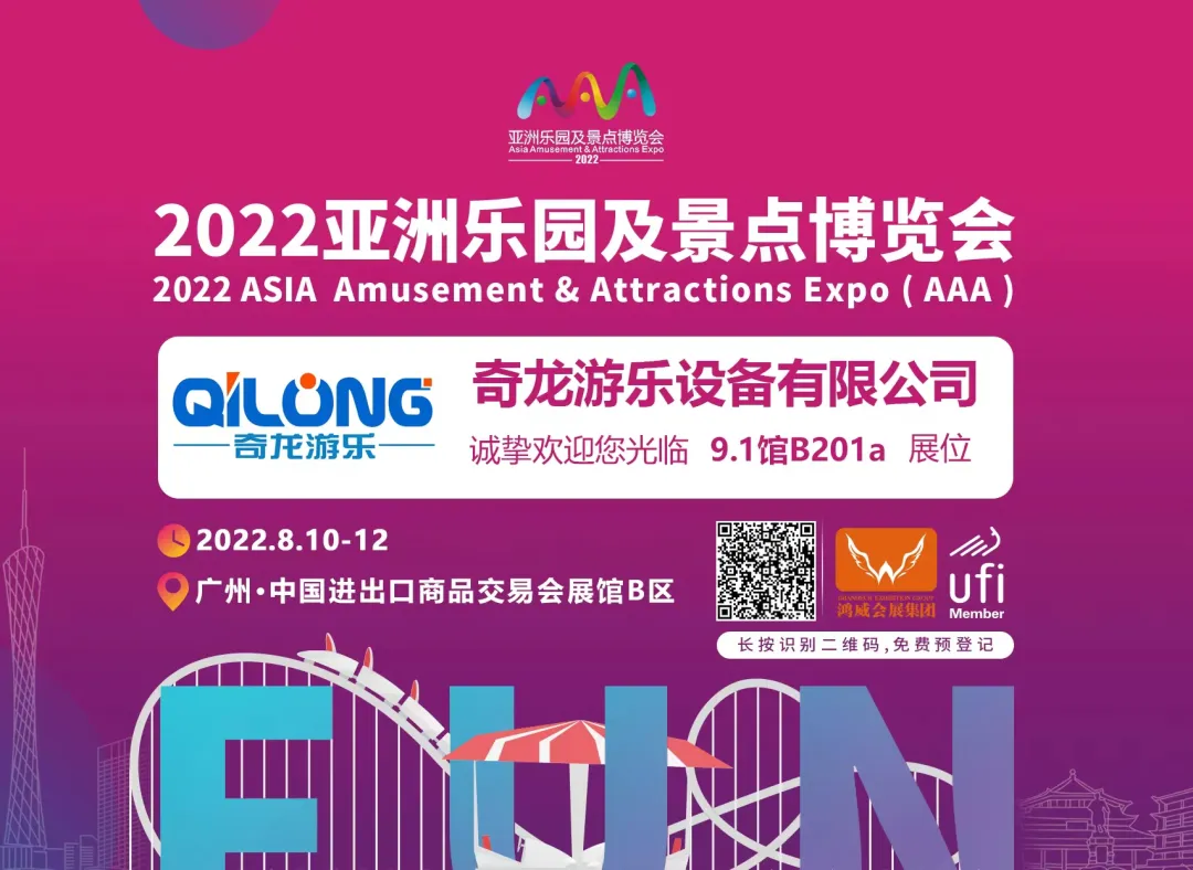 您好!非常感谢您长期以来对我司的大力支持!2022亚洲乐园及景点博览会将于2022年8月10日至8月12日在广州·中国进出口商品交易会展馆B区举办;云集了众多国内外知名企业,奇龙游乐作为参展商之一,今年整装待发,邀您一起参加本次展览会!