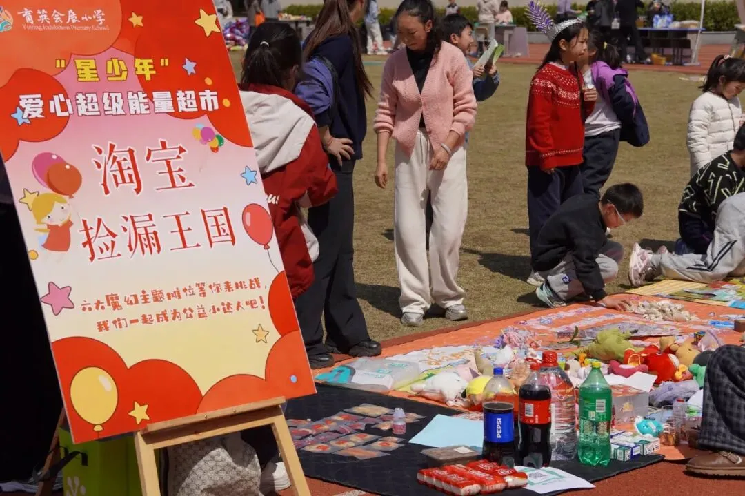 3月11日下午,育英会展学校的操场彻底“炸”了。叫卖声、欢呼声、讨价还价声,一浪高过一浪。如果你刚好路过,一定会以为这里在举办什么大型狂欢节。没错,这就是“星少年爱心超级能量集市”的现场。六个主题区域,几十个创意摊位,全校师生加家长志愿者,整整两个小时,用热情和爱心把操场变成了一个超级能量场。