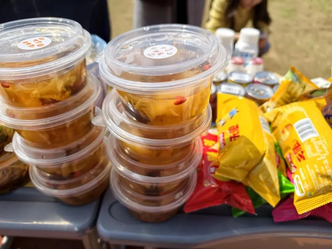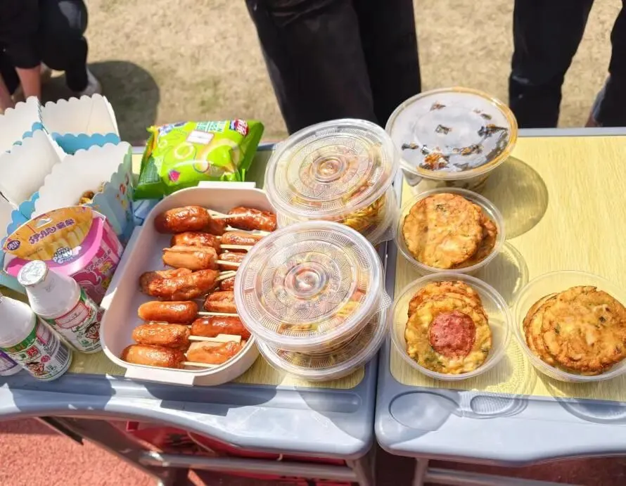 要说今天最硬核的摊位,非2404班莫属。2404班串了整整2000串钵钵鸡!麻辣的、五香的,整整齐齐码了满满一桌。