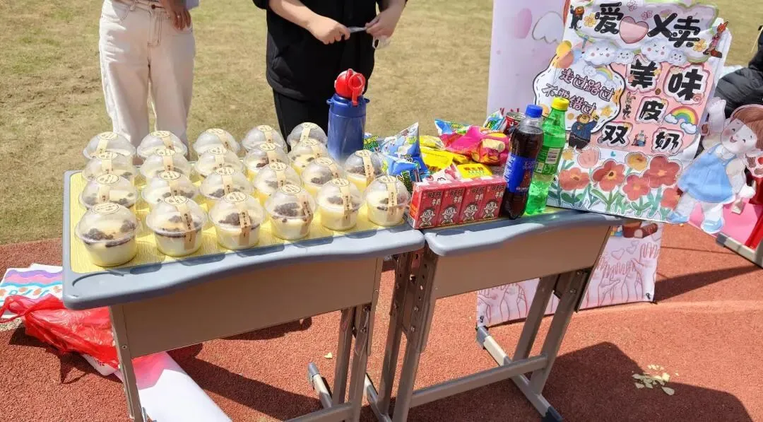 魔法有爱厨房的香味飘满了半个操场。饼干、蛋糕、果汁……学生和家长们亲手制作的美食,刚摆上桌就被抢购一空。收钱的家长志愿者手忙脚乱:“别急别急,一个一个来!”