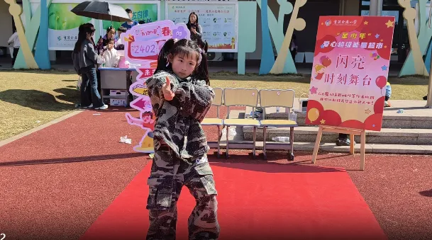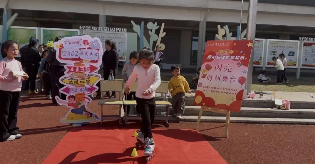闪亮时刻舞台上,舞蹈、轮滑各种表演轮番登场,小演员们卖力演出,台下的小观众们则举着“爱心币”认真投票——这可是对表演者最高的认可。