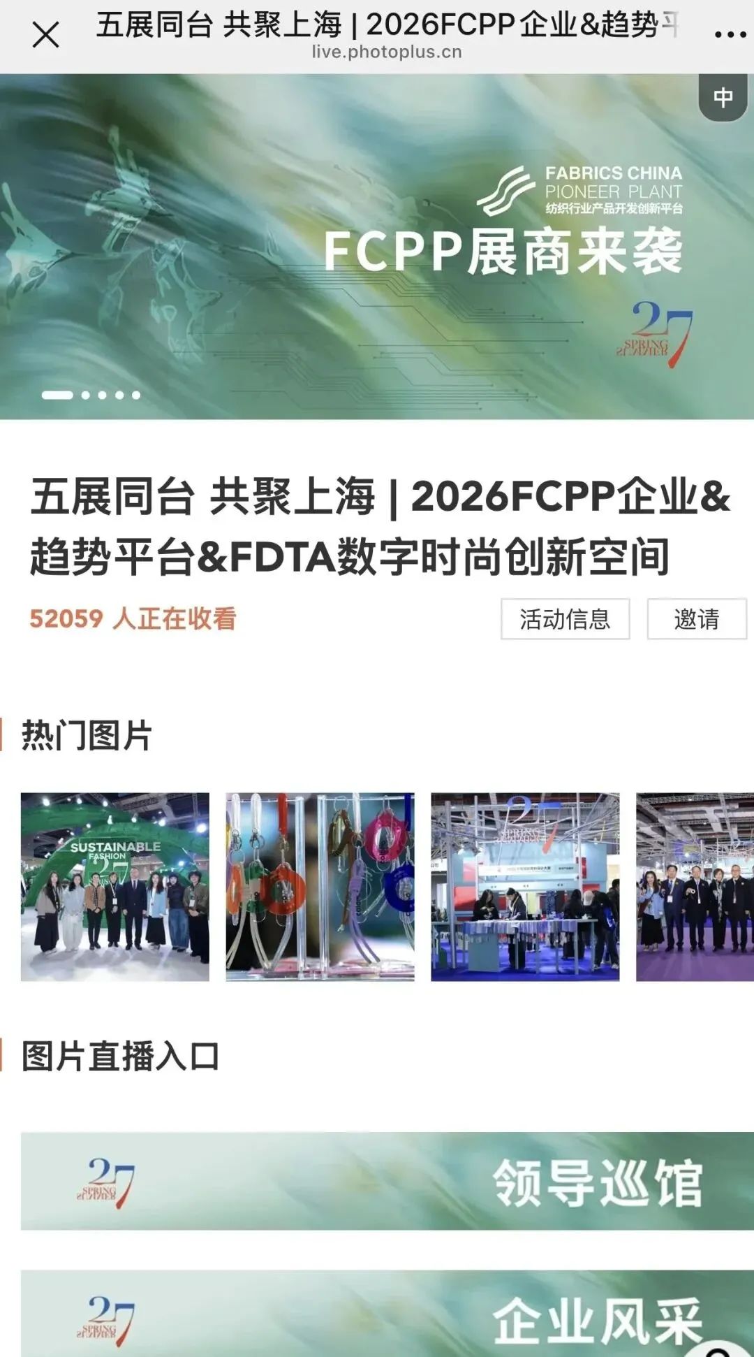 开展第一天,中国纺织工业联合会党委书记/会长孙瑞哲,会领导夏令敏、徐迎新、阎岩,原副会长张延恺,中国纺织信息中心主任胡松,中国纺织出版社有限公司党委书记、董事长郑伟良,中国纺联生产力促进部主任/中国纺织信息中心副主任/纺织产品开发中心主任李波,中国棉纺织行业协会会长董奎勇,中国纺联科技发展部主任张传雄,中国贸促会纺织行业分会副会长张涛,中国纺织信息中心副主任张玮、齐梅,纺织产品开发中心副主任陈宝建,中国纺联生产力促进部副主任/中国纺织信息中心产品开发部主任陈小丽,中国纺联社会责任办公室副主任胡柯华,中国纺织信息中心产业经济研究室主任闫博,流行趋势部主任李晓菲等一行领导来到了中国纺织信息中心各展示空间及FCPP企业展位,并与展位负责人进行了深入交流。