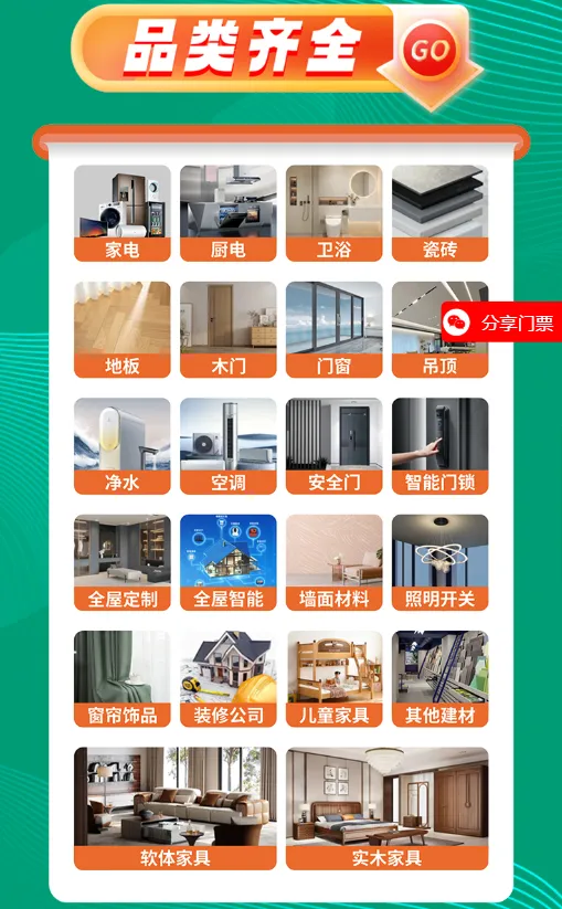 装修材料:涵盖瓷砖、地板、卫浴、门窗、涂料、壁纸等,满足不同装修风格需求。