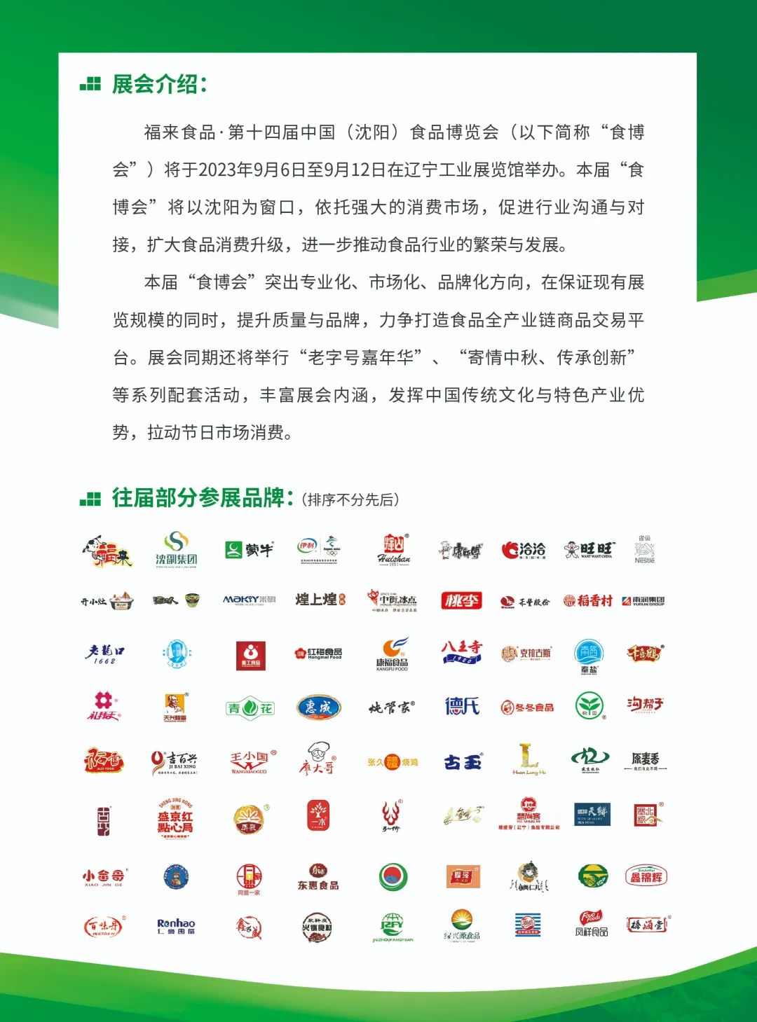 福来食品.第十四届中国(沈阳)食品博览会邀请函