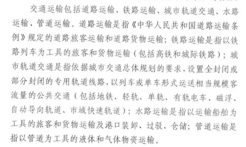 一是,首次将“城市轨道交通”与“道路运输、铁路运输、水路运输、管道运输”并列,共同作为“交通运输”的五种方式之一。