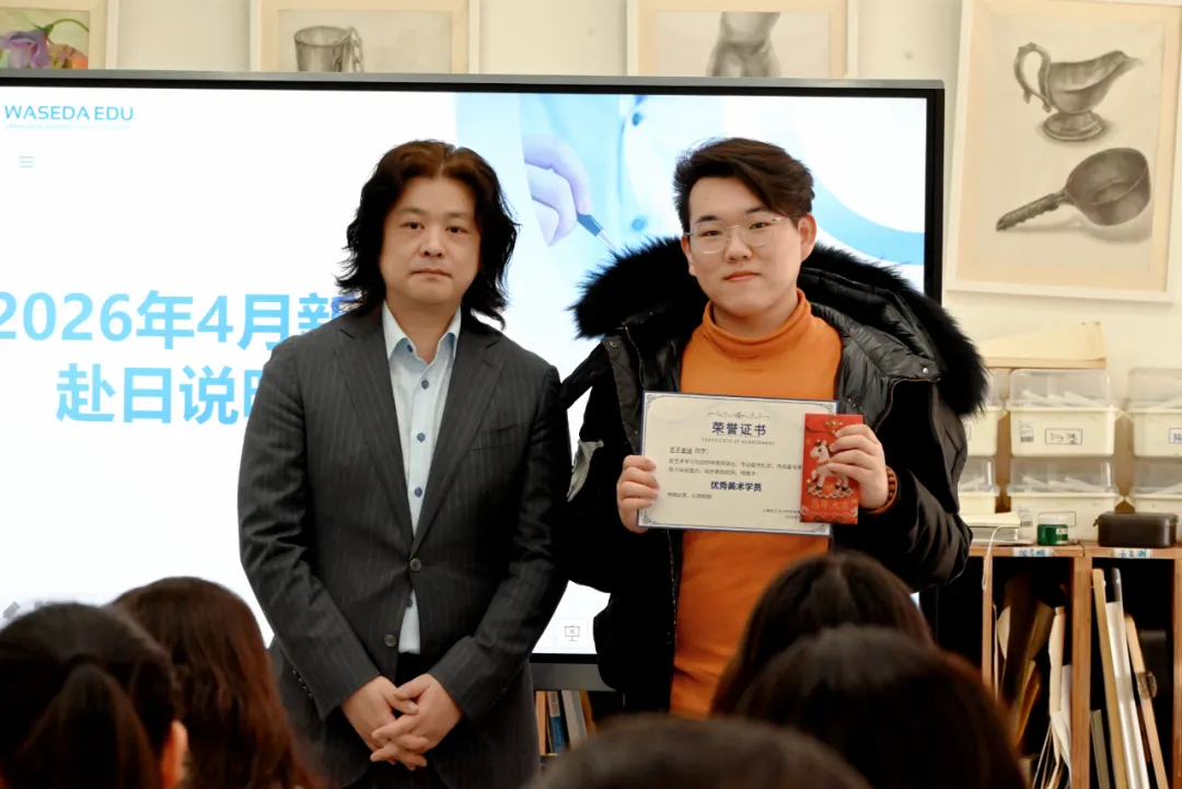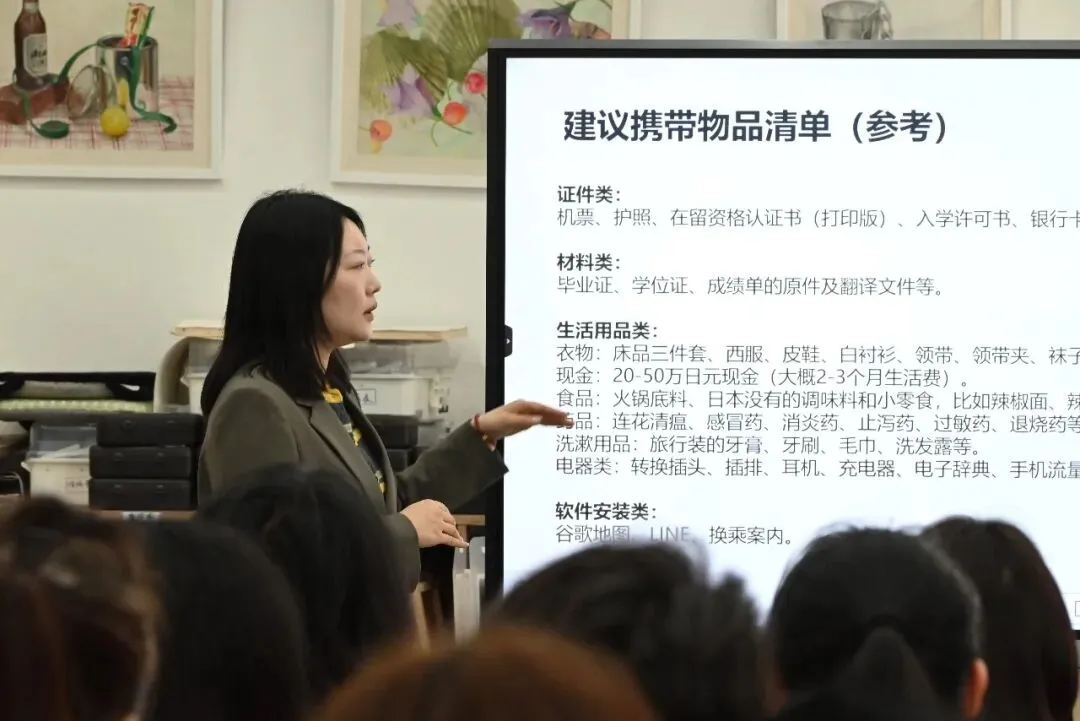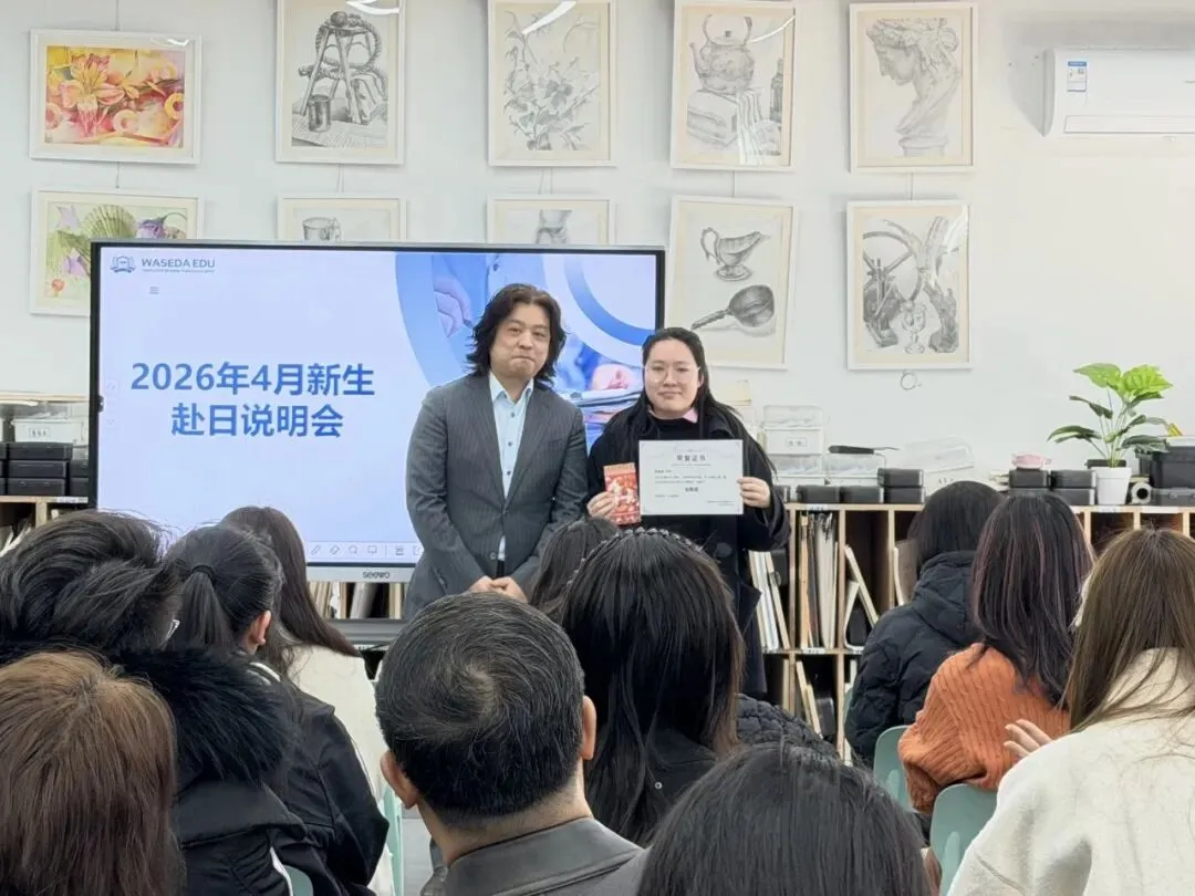 活动当天,学校还同步举行了赴日行前说明会。特别邀请到来自早稻田EDU日本语学校的于老师,以及早稻田EDU美术学院东京校学院长韩老师来到现场,为同学们和家长进行行前指导与分享。