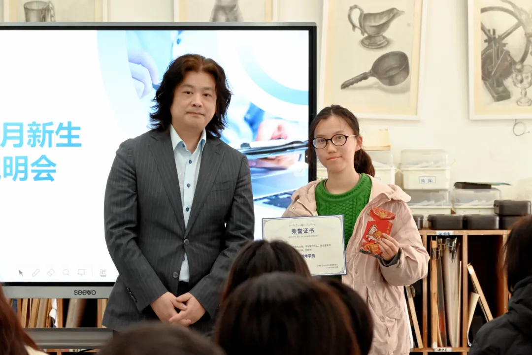 学校还为本届高三艺术生举行了简短而隆重的颁奖环节,对在学习过程中表现突出的同学进行表彰。在三年的学习与创作过程中,同学们不仅在专业能力上不断提升,也在日常学习态度与坚持精神上展现出了良好的成长状态。此次颁奖既是对同学们阶段性努力的肯定,也希望通过这样的方式鼓励大家在未来的学习道路上继续保持认真与专注。