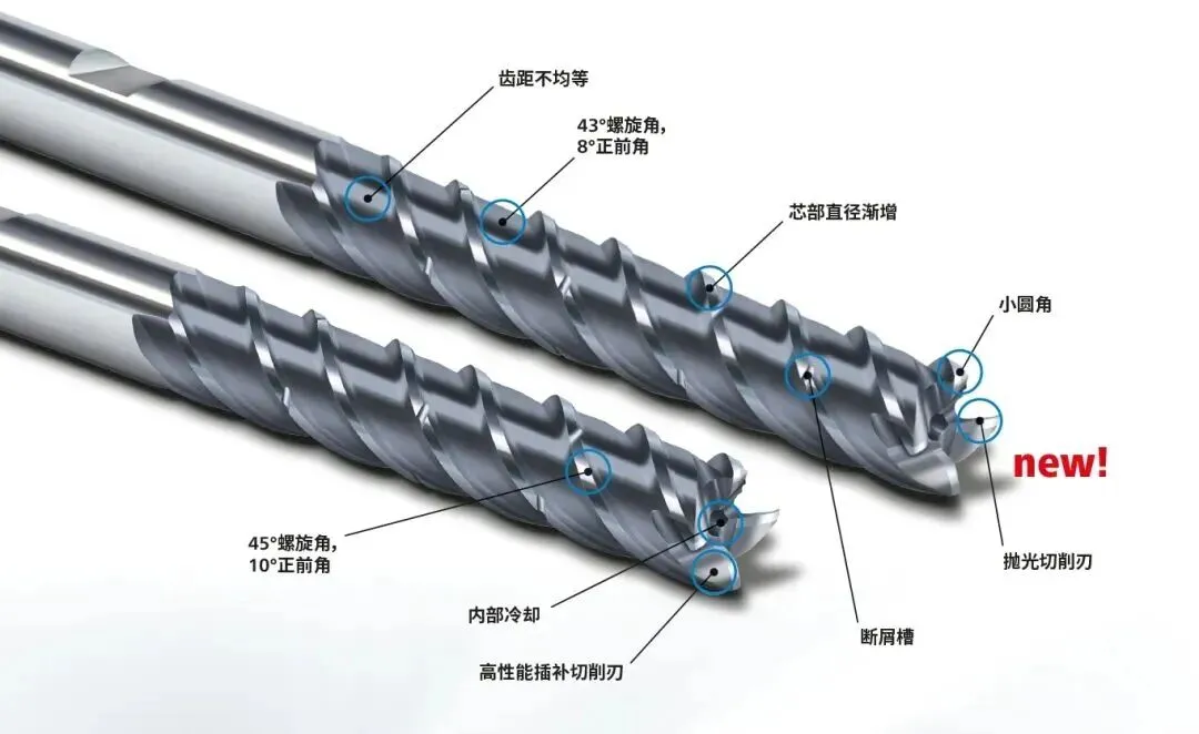 该系列的最新成员包括一个切削刃长为 6.3 倍径的加长型,具有非常坚固的切削刃形,非常适用于大螺旋角插补铣削和使用全刃铣削。结合高动态铣削 HDC 策略,MFC 刀具展现出了巨大的性能潜力。