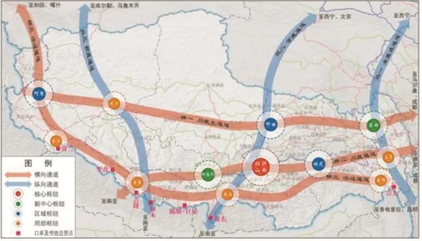 提升交通综合运输服务能力。构建“三横三纵”综合立体交通网主骨架,打造由京藏通道、川藏通道组成的复合型、大容量“十字型”主干通道,由川藏北通道、沿边通道、青藏滇通道、新藏通道组成的多出口、多路线“井字型”次干通道,有效提升对外联通能力。构建多层一体交通枢纽群,打造拉萨—山南一体化综合交通核心枢纽群,推进建设贡嘎国际机场综合交通枢纽,建设日喀则、昌都副中心综合交通枢纽和林芝、那曲、阿里区域综合交通枢纽。加强边境陆路口岸(通道)枢纽建设。