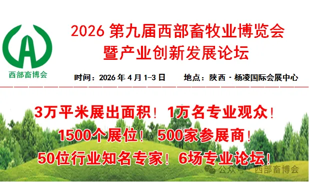 “第九届中国西部畜牧业博览会暨产业创新发展论坛” 将于2026年4月1日-3日在陕西·杨凌举办。