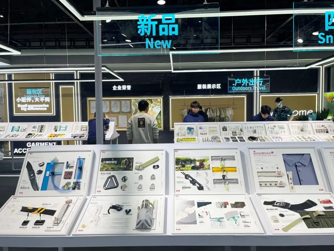 此次展览共展示了新品、运动休闲、四合扣、箱包