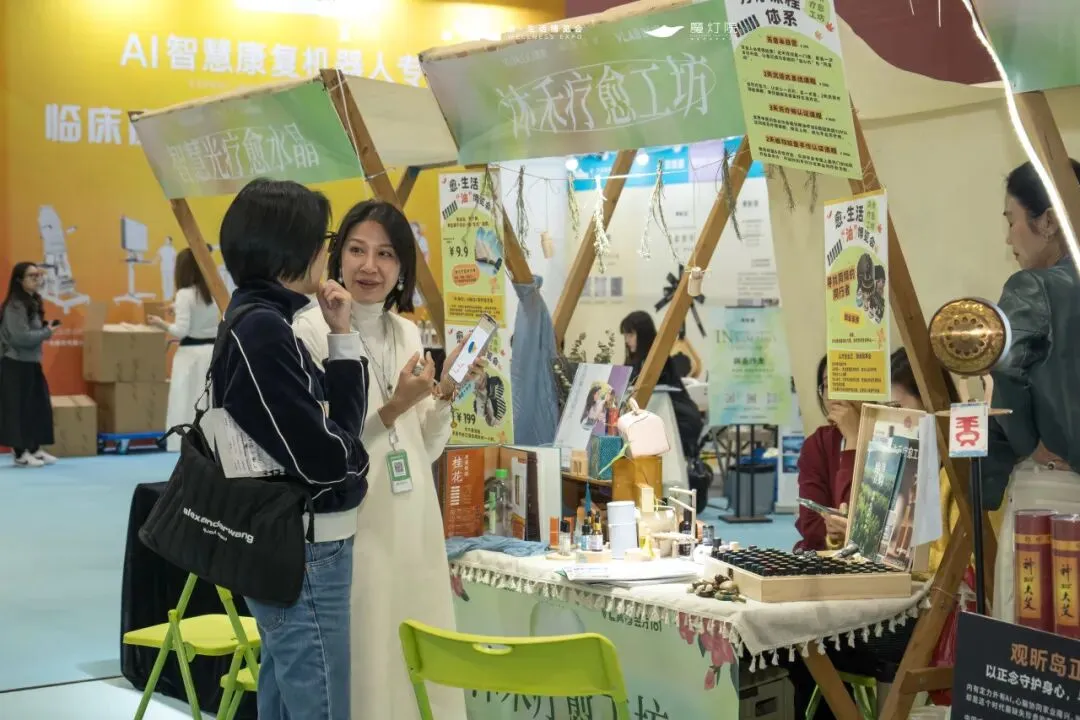本届博览会现场设置了众多特色互动区,包括香氛芭莎芳香疗愈区、遇鹿疗愈师联盟对接区、繁香里调香工作坊、春天自有美愈力艺术展、呼噜动漫疗愈IP专区、愈见户外·房车旷野疗愈营。