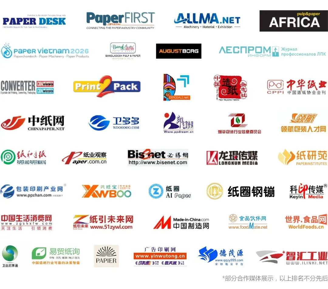 展会联动深耕纸业领域多年的国内外行业媒体,构建全方位、多层次、宽领域的传播矩阵,覆盖制浆造纸、纸基材料、印刷包装及终端应用等全产业链环节。