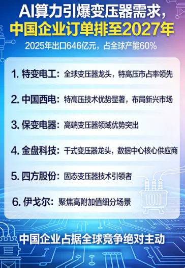 2025年,中国变压器出口总值高达646亿元,同比增长36%,产能约占全球60%。