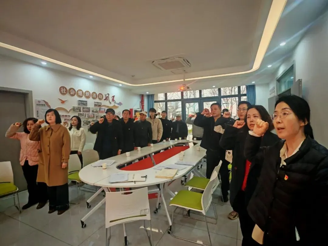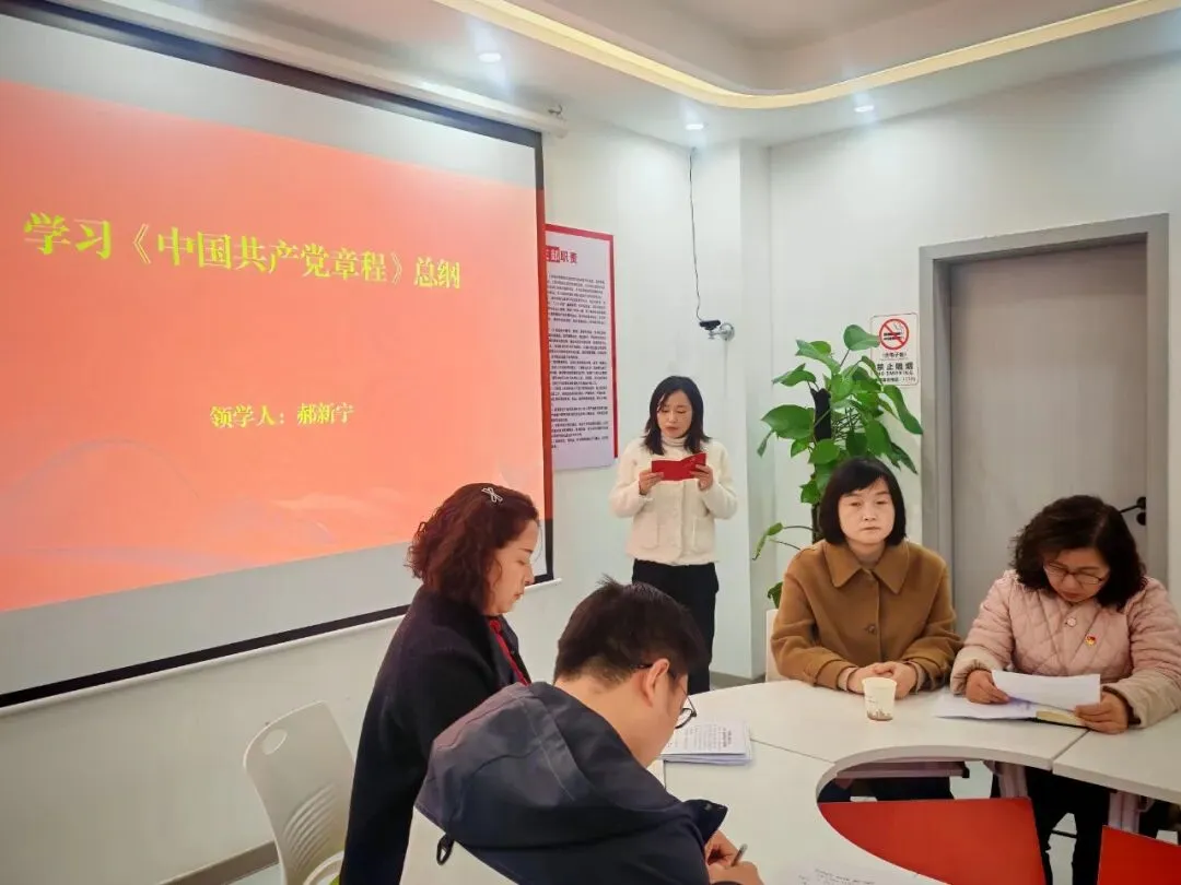 "我志愿加入中国共产党……"在党员齐小梅同志的领誓下,全体党员面向党旗,高举右拳,重温入党誓词,铿锵有力的誓言响彻会场。党员郝新宁同志领学《中国共产党章程》总纲,引导党员时刻牢记党员身份,自觉遵守党章党规。活动中,全体党员按时足额交纳党费,以实际行动履行党员义务。