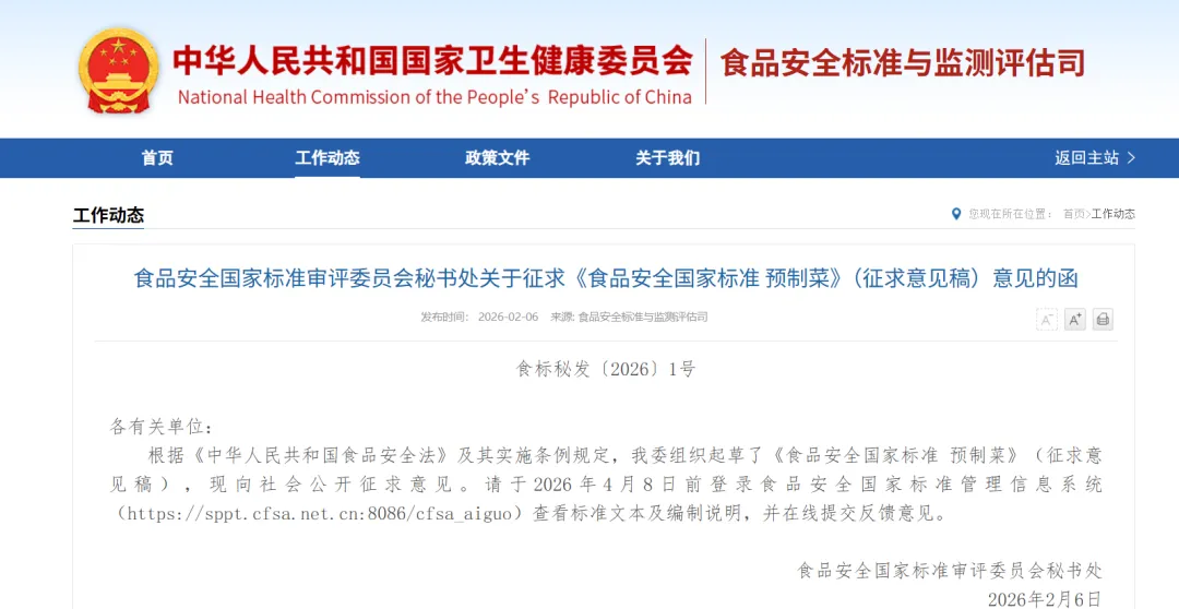 2026年2月,国家卫生健康委发布《食品安全国家标准预制菜》(征求意见稿),为狂奔多年的预制菜行业首次设立国家级强制性标准。从“不得添加防腐剂”到“保质期最长不超过12个月”,再到对食品添加剂“非必要不添加”的严控原则,国标划定的不仅是安全底线,更是产业升级的起跑线。