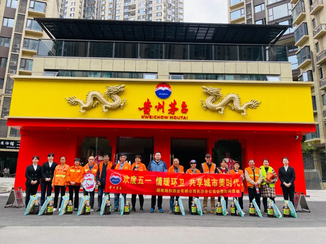 中华自古有崇尚公益、热心慈善的优秀传统文化,从“守望相助”到“乐善好施”,从“积德行善”到“兼济天下”,从“恻隐之心”到“兼爱非攻”,以人为本的理念始终遍布在中华大地。为深入践行以茅台美学为价值内涵的“五线”高质量发展之路,以一颗赤城的感恩之心做好公益,回馈老百姓。在"五一"国际劳动节来临之际,为感谢“城市美容师”们守护城市的辛勤付出,4月27日,湖南湘韵酒业有限公司长沙分公司组织开展以“欢度五一 情暖环卫 共享城市美时代”为主题的公益慰问活动,向辖区内常年坚守岗位的一线环卫工人致以节日的问候和崇高的敬意,并为他们送去了爱心用品。