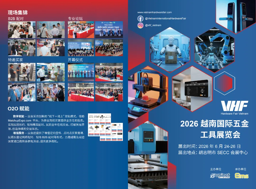“越南国际五金工具展览会(Vietnam International Tools & Hardware Fair -- Hardware Fair Vietnam)”,由越南国家科技部科技创新局、新加坡Uninet展览集团联合承办,得到越南国家科技部、越南商业支持与发展中心、越南自动化协会的大力支持,是迄今越南五金工具领域唯一独立举办的专业性、国际展会。