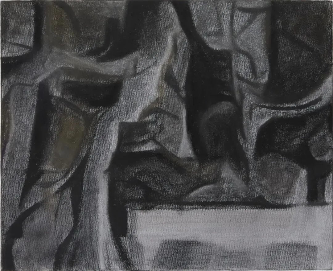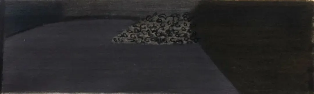 胡媛媛“低光照度”的绘画中暗含着同样的视角,在内部与外部、主体与客体、可辨与溃散之间,创造了一个模糊地带,在这里,安放着清醒的睡眠、雷鸣的静谧和隐去的显现。她曾在湖北荆州长大,历史的痕迹与土地的生长,让她感受到一种“地方”的悲壮与伟大,也培育了她对日常(景)物中诸如角度、硬度、标记、形状等的敏锐与感知上的朴素。她对哲学持续的专研和写作,提供着在日常中不断发现的动力。她甚至直接将写作延展到画面,使其成为作品的一部分。展览中的草图,将令观众看到她为捕捉对象特征所付出的努力。