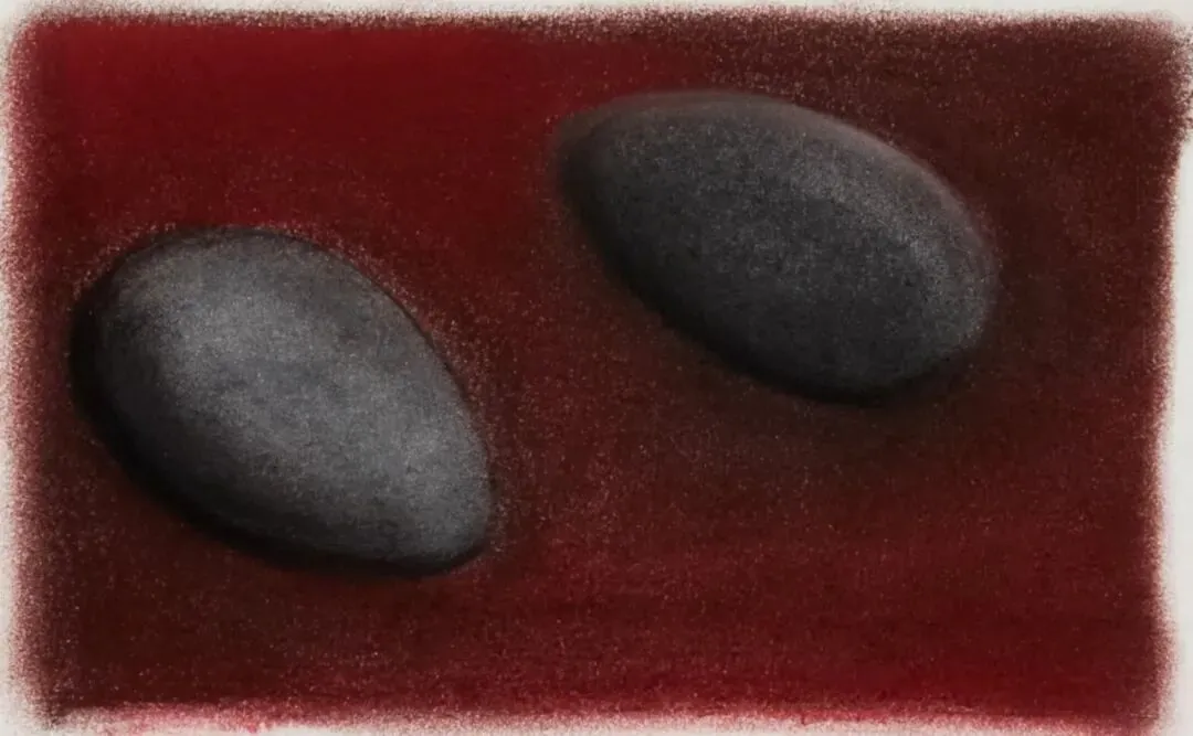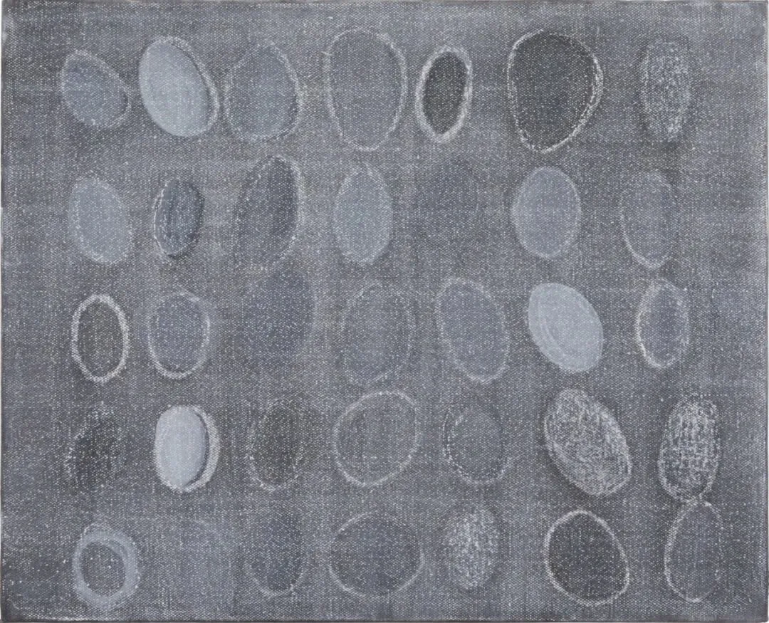 以鸡蛋形态作为视觉基底,通过重复、弥散与模糊化的视觉策略消解具体物象的确定性在场,在朦胧的视觉处理中凸显形状的轮廓、密度与氛围。这一视觉提炼过程,将具象形态的描摹转化为抽象符号的建构,以形式化的视觉语言搭建起感官经验与抽象思辨之间的对话空间,试图实现艺术从具象摹仿到符号化、观念化表达的哲学性意味。