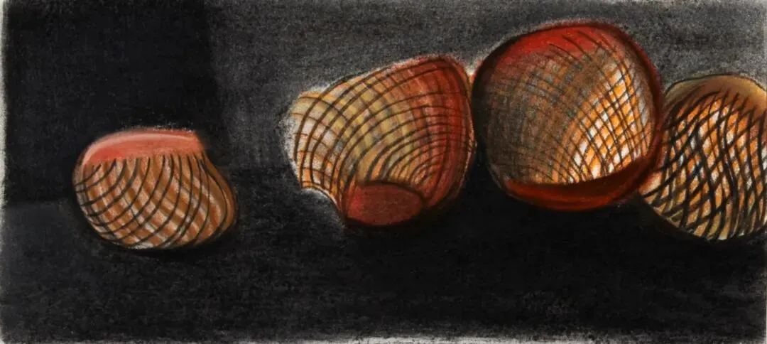 壳(Shell)2025, 纸本综合,装裱尺寸:28×36 cm,画芯尺寸: 28.5×13cm