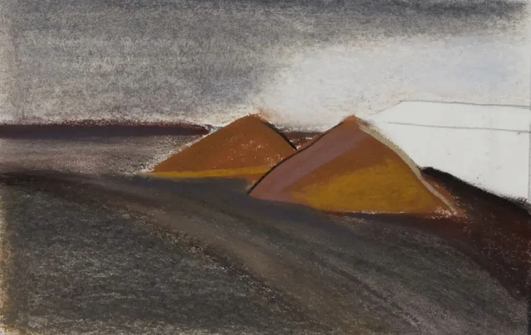 蒙东煤炭外运“灯泡线”(The "light bulb line" for the transportation of coal from the northeastern region)2025,布面综合(油画棒、色粉、炭条),40×50cm ,©艺术家及弄空间
