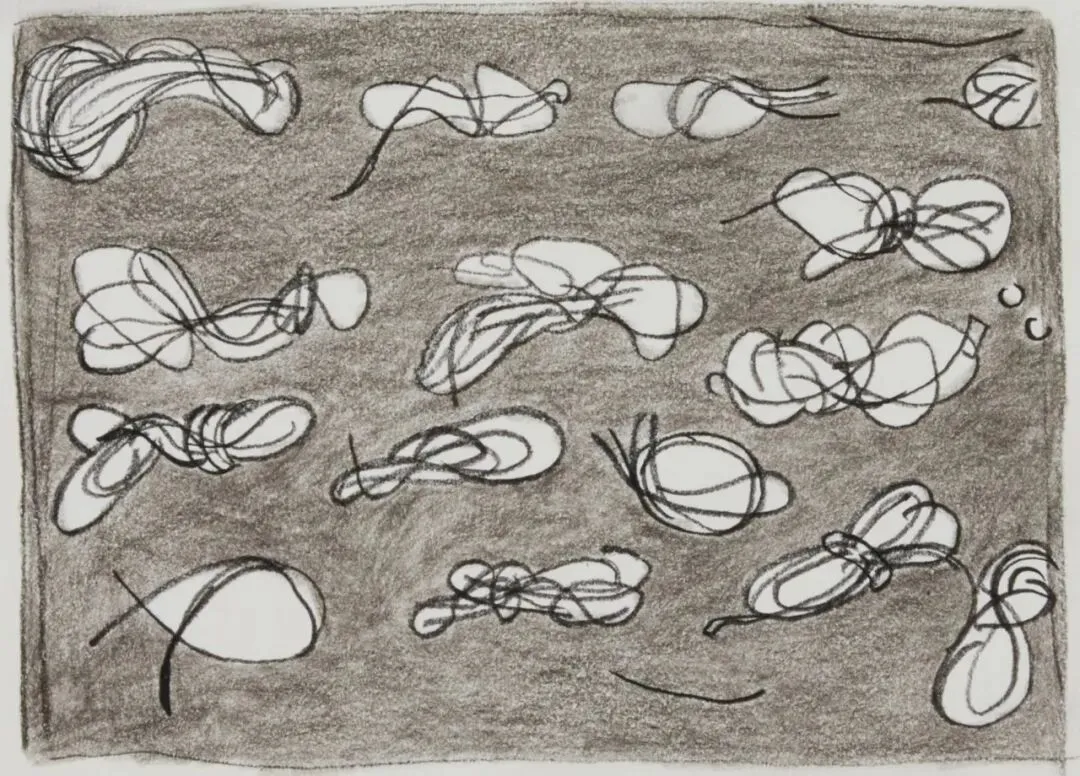“总结”的片段("Summary" fragments)2025,布面综合(油画棒、色粉、炭条),40×50cm ,©艺术家及弄空间