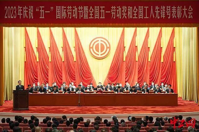 2023年庆祝“五一”国际劳动节暨全国五一劳动奖和全国工人先锋号表彰大会在北京人民大会堂隆重举行,用于表彰全国职工职业技能大赛优胜者和国家重大项目的建设者。