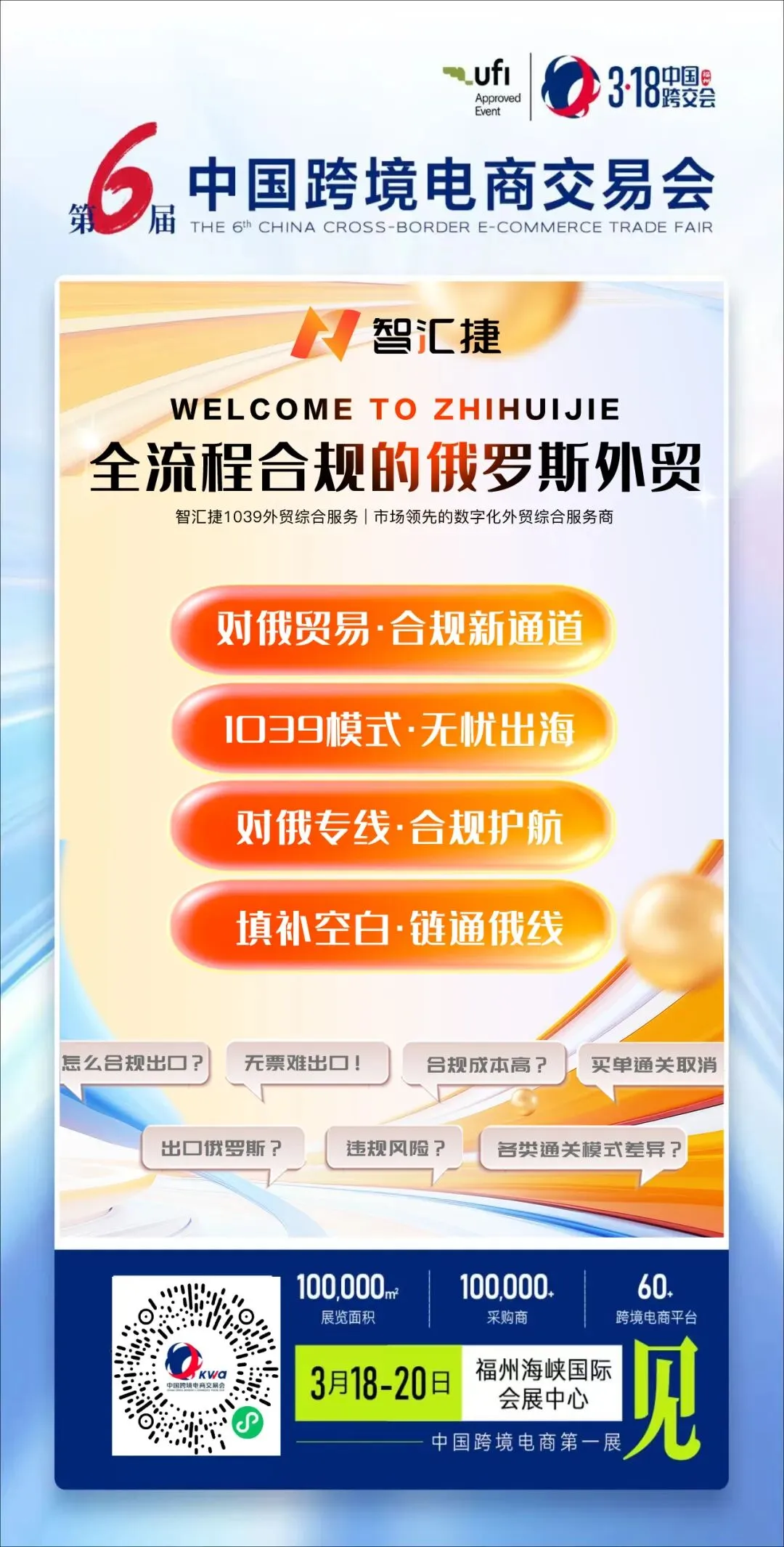 3月18日,在福州海峡国际会展中心,智汇捷带着“阳光化出海”的答案,来了!2026第六届中国跨境电商交易会(暨318跨交会),不仅是行业的开年首场盛会,更是公认的“中国跨境电商第一展”。- 规模:10万平方米展区,汇聚全国80多个跨境电商适配产业带 。