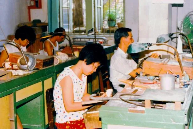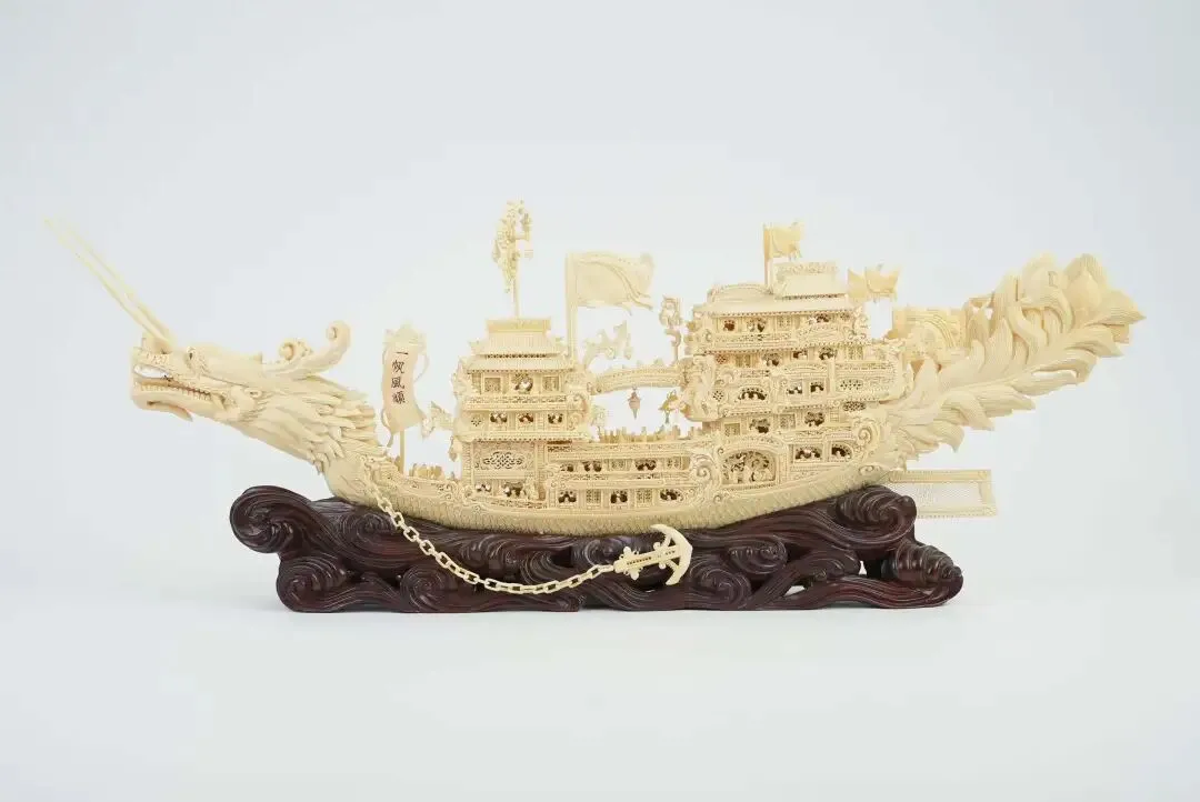 八十年代鼎盛时期,广州市大新象牙工艺厂打造的象牙球、象牙船、撒网船“镇厂三宝”代表着南派牙雕的最高技艺,广州牙雕也借此远销海外、出口创汇,撑起全国牙雕半壁江山。