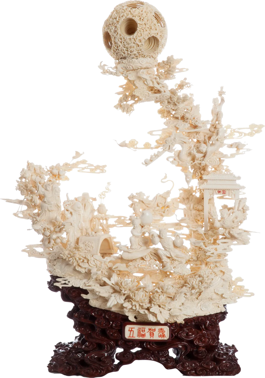 秦汉时,象牙随海上丝路而来;魏晋时,工匠已能编织象牙簟;宋代,两层牙球惊艳问世。至清代,广州成为全球牙雕加工贸易中心,大新街商号林立,广州牙雕名扬海内外。