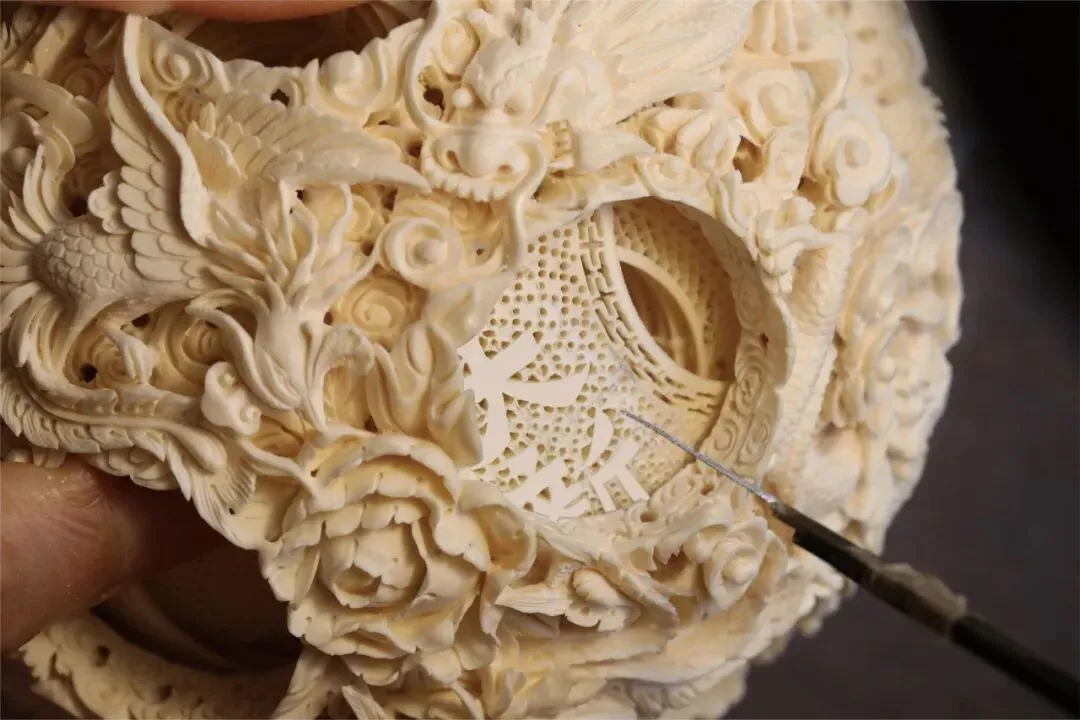 后来,受国际象牙贸易禁令影响,以大新公司为代表的广州牙雕从业者主动求变,相继探索使用猛犸象牙、牛骨等替代材料,让千年匠艺在时代更迭中生生不息。