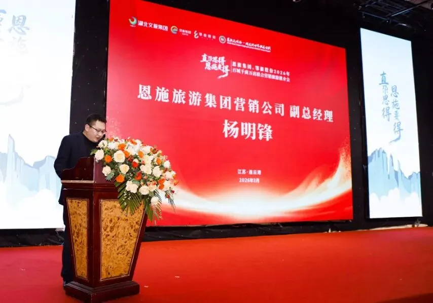在连云港,恩旅集团营销公司副总经理杨明锋出席并致辞,向与会嘉宾介绍了恩旅集团、鄂旅股份旗下核心景区群的迭代升级与2026年产品规划,并现场公布了渠道激励政策。他表示,恩施与连云港虽相隔千里,但山海相连、人文相通,合作空间广阔。诚邀连云港旅行商及游客走进恩施,体验独特的自然风光与民俗文化。