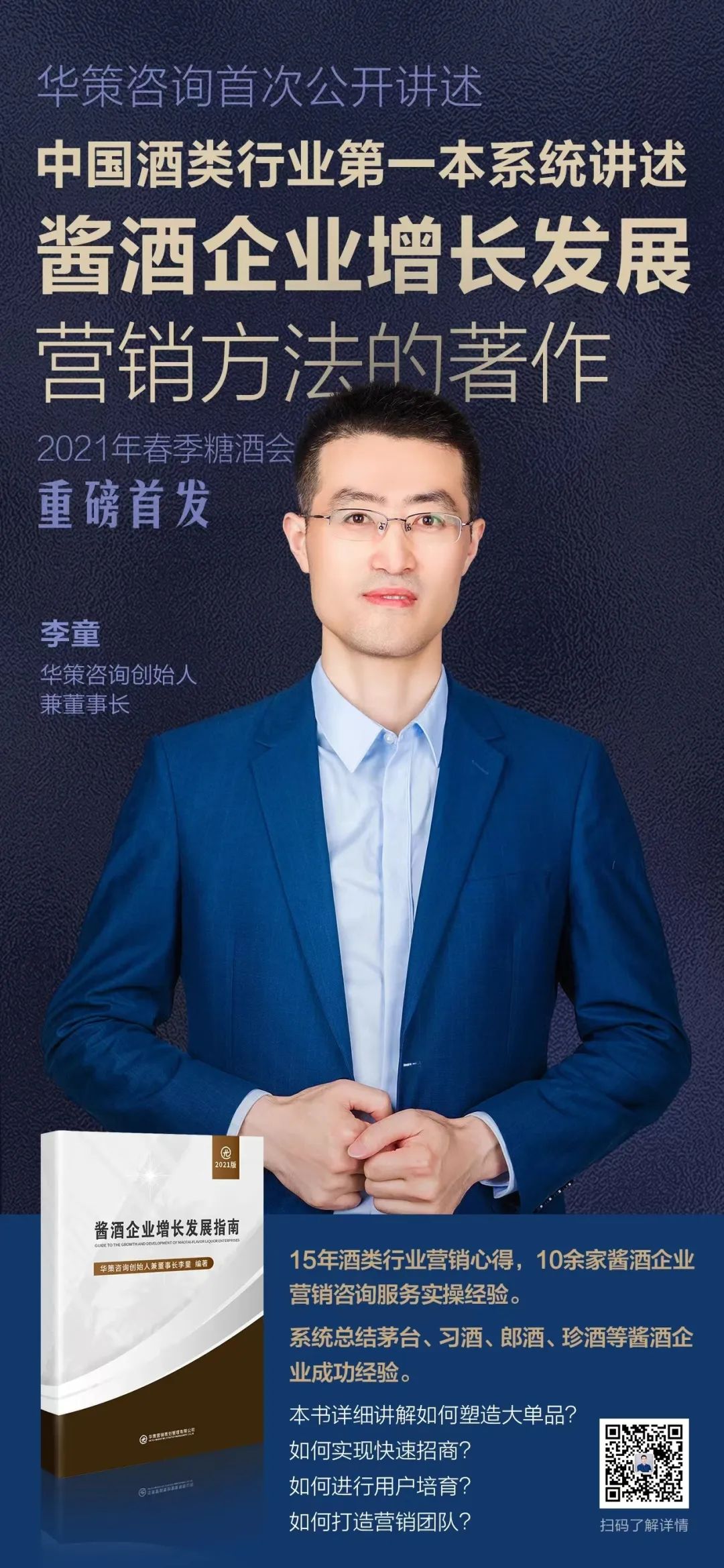 李童:华策咨询创始人。从事酒业咨询16年,拥有极为丰厚的酒水营销咨询从业经验。专业擅长企业转型升级、商业模式设计、营销战略规划、品牌激活与塑造、大单品打造等领域。先后为四特、汾酒、劲酒、河套、珍酒、皖酒、九江双蒸、国台、丛台等几十家酒企酒商提供过营销咨询服务。