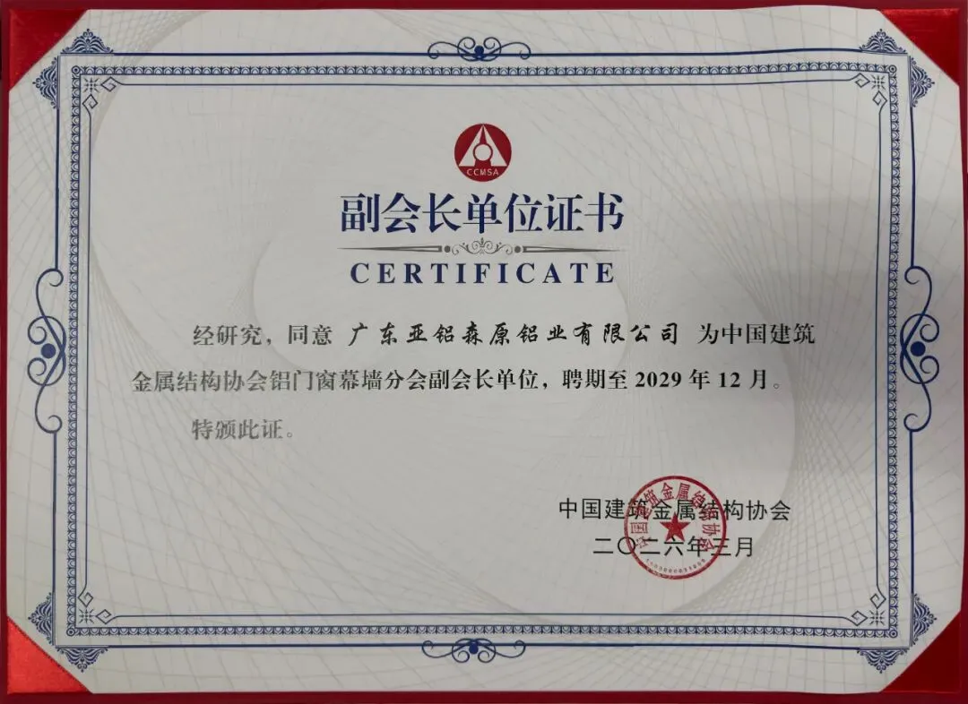 此外,深耕铝加工行业36年的AAG亚铝,凭借多项权威认证及众多地标项目供货经验,以及始终坚守品质初心、深耕技术创新的精神。中国建筑金属结构协会授予AAG亚铝为中国建筑金属结构协会铝门窗幕墙分会副会长单位,这一认可进一步彰显了品牌在行业内的核心地位与影响力。