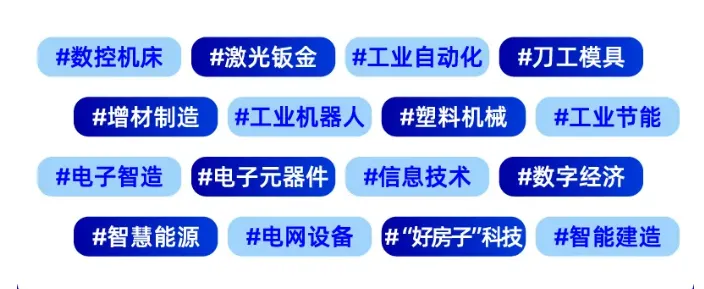 CNC加工中心、铣床、车床、磨床、镗床、锯床、电火花机、线切割机、特种加工机床功能部件、附件;激光工业(切割、焊接、雕刻、打标)、金属成型、锻压、冲压、钣金加工、热处理;模具及材料、工/刀/夹具、磨料磨具、增材制造/3D打印;