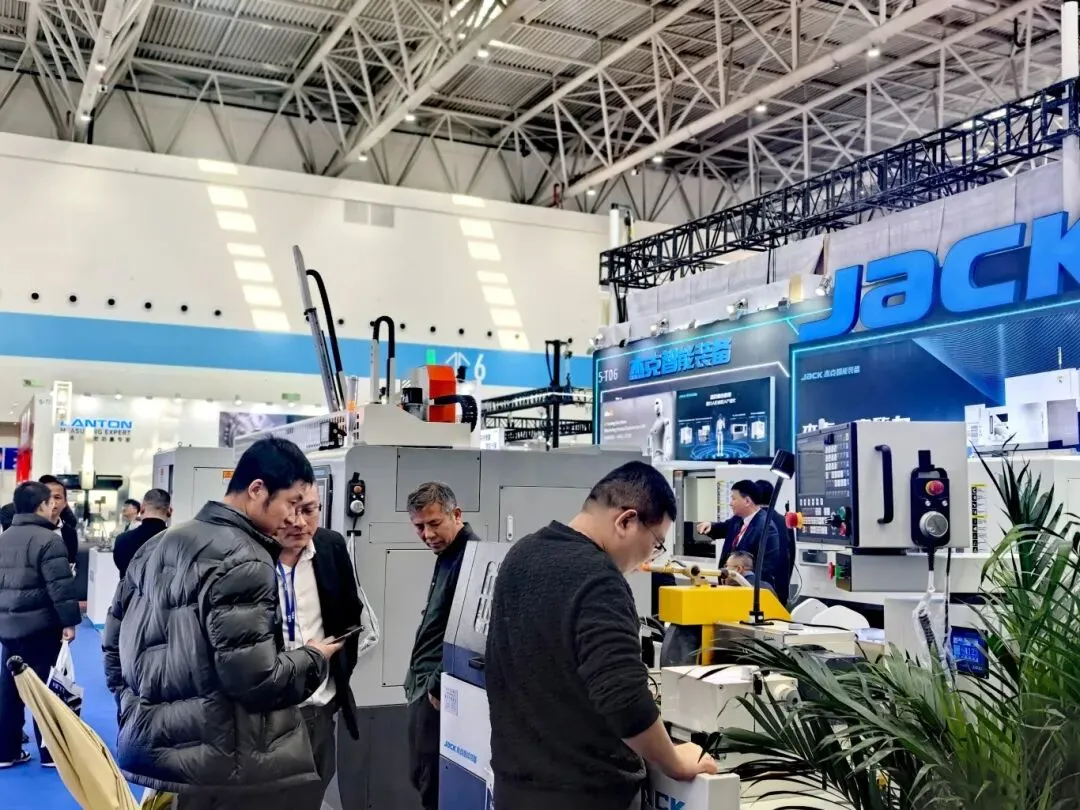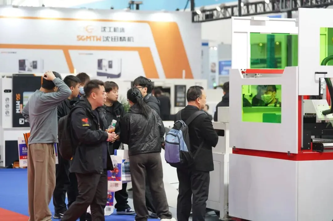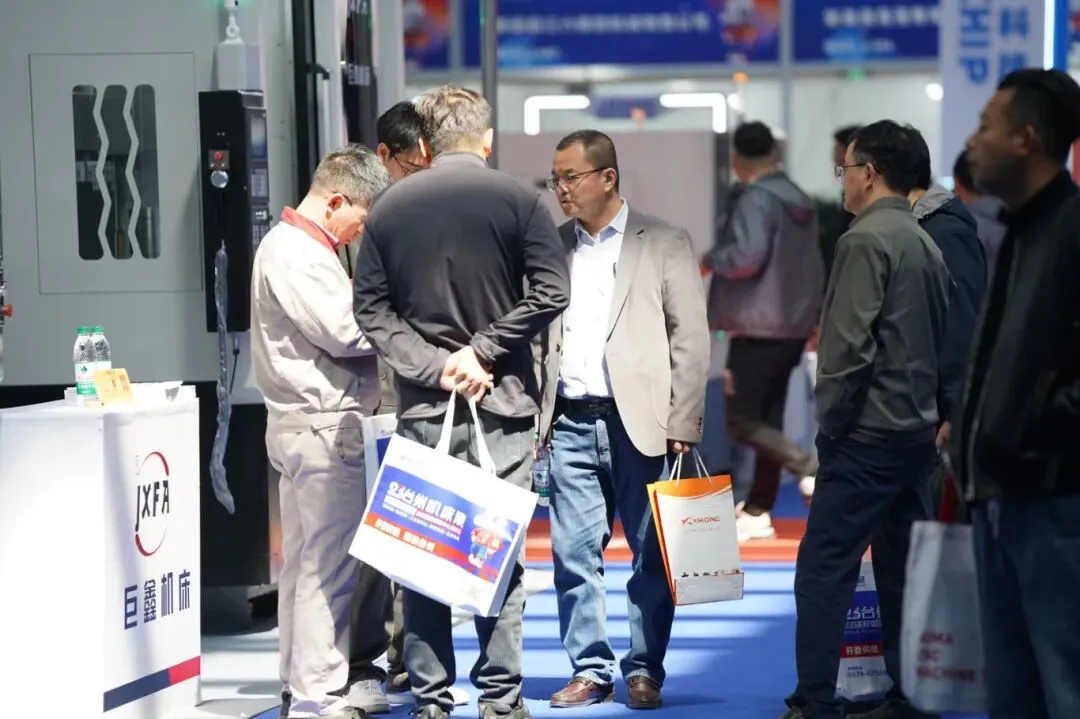 各大展位前,客商交流气氛热烈,来自行业内的专业观众仔细观看设备演示,询问技术参数,围绕加工精度、设备性能等具体问题进行对接洽谈。