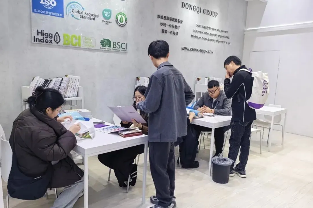 本次展会,东企集团全产业链协同能力得到充分展现。从位于8.2F55的纱线展位的原料创新,到位于6.1K125的面料展位的材料突破,再到位于1.1F512的濮院女装展位的羊绒衫特色呈现,最终汇聚于位于4.1M016的服装大摊位的成衣展示——这条完整的价值链,让客商可以在一个集团体系内完成从原料选品到成衣采购的全流程对接。