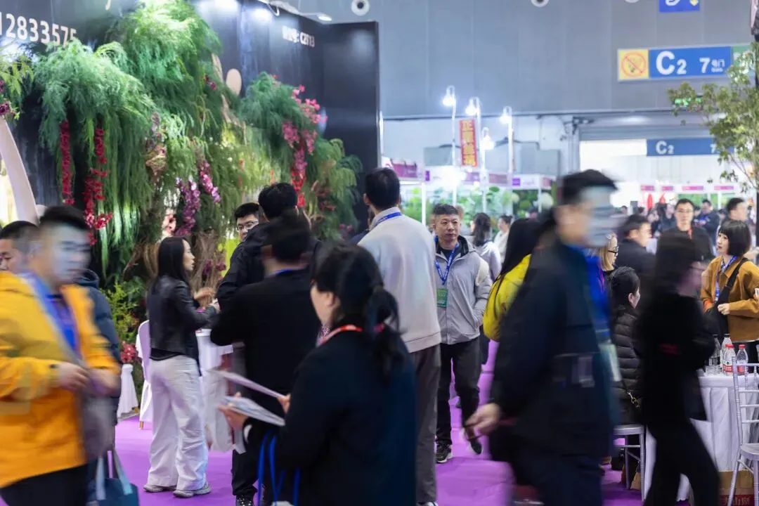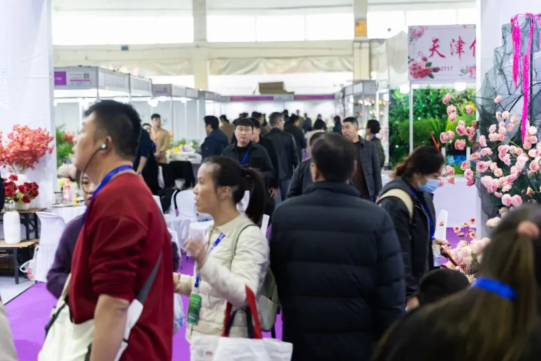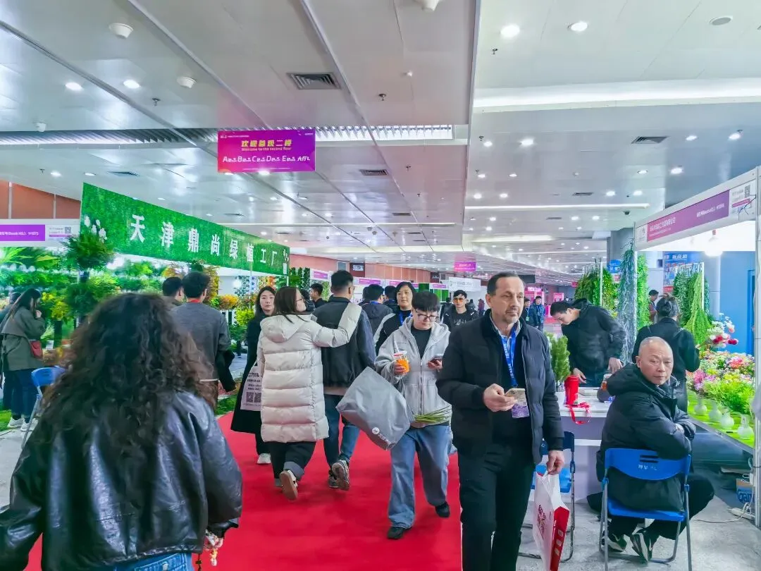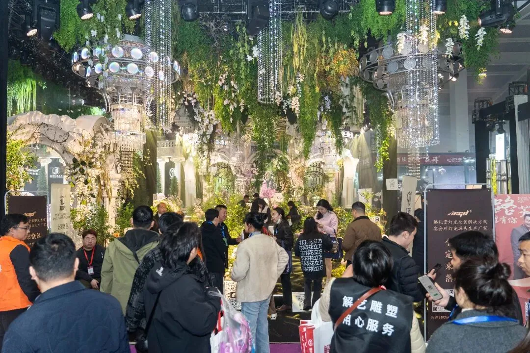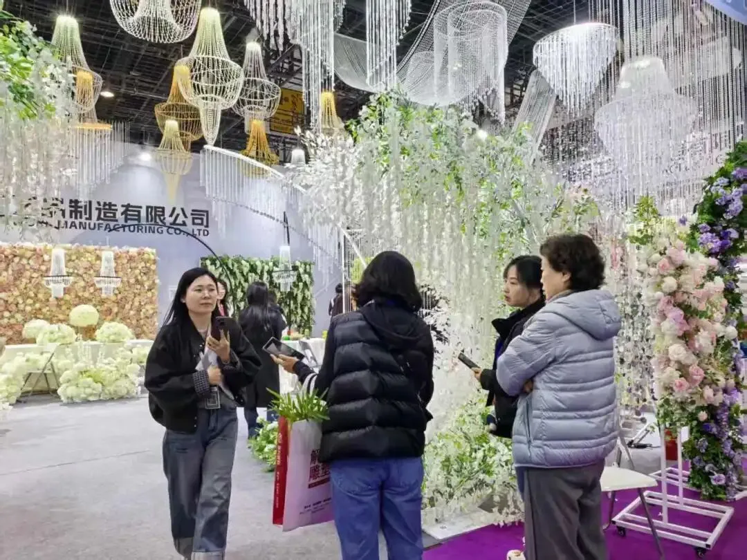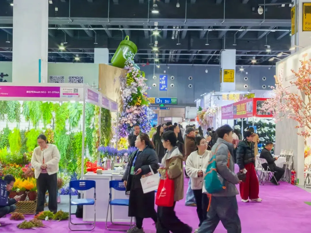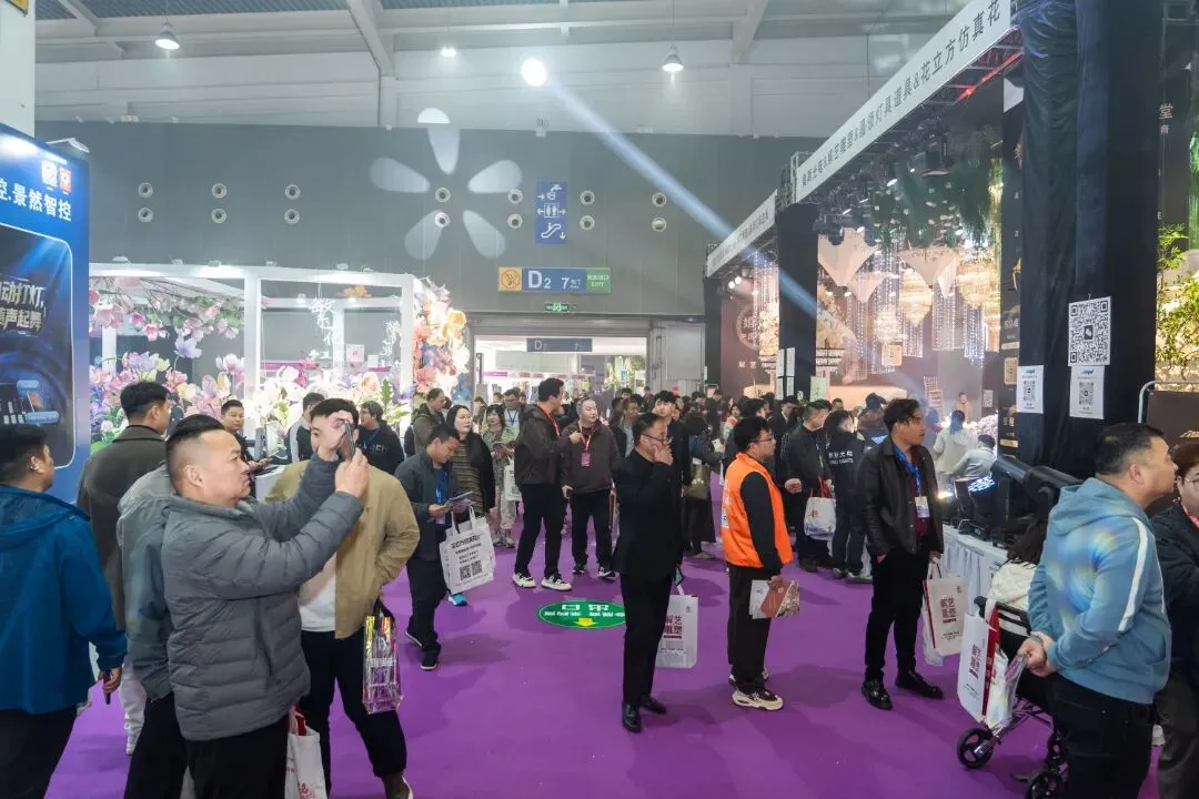 本届展会规模再创新高,展出面积达 11 万平方米,集结 2000 余家优质参展厂企、5000 余个国际标准展位,仿真植物花卉、婚庆道具、美陈行业全产业链群星荟萃、大咖云集,展会现场人气持续火爆,洽谈氛围热烈非凡,处处涌动着蓬勃生机与合作活力。
