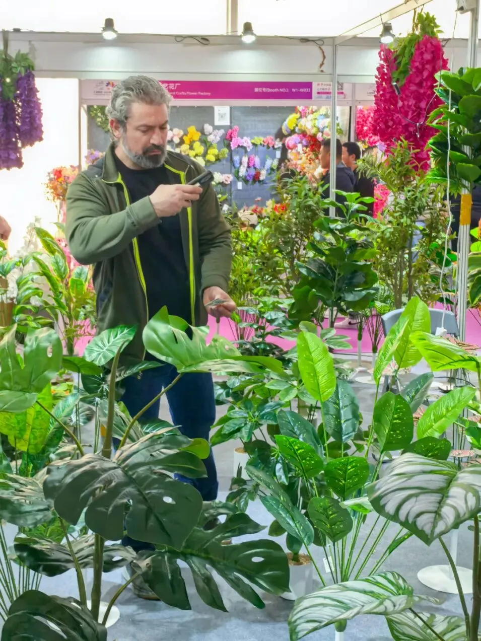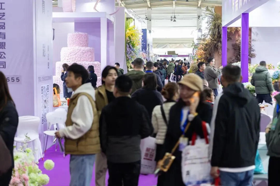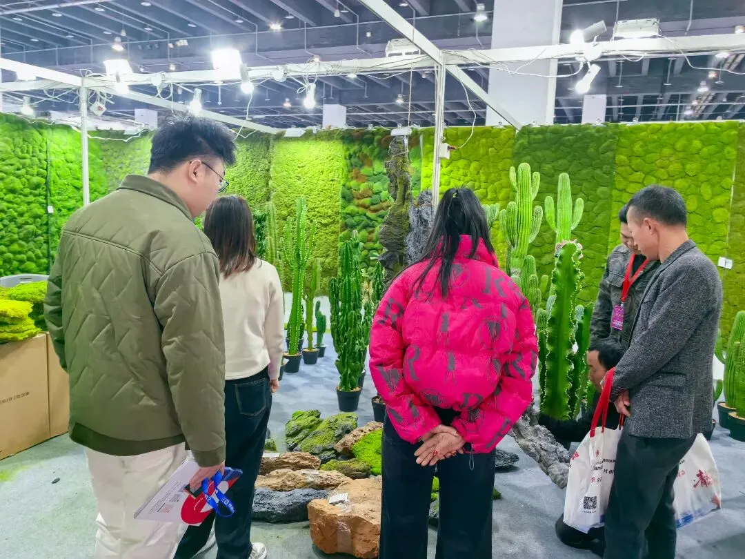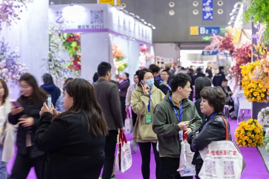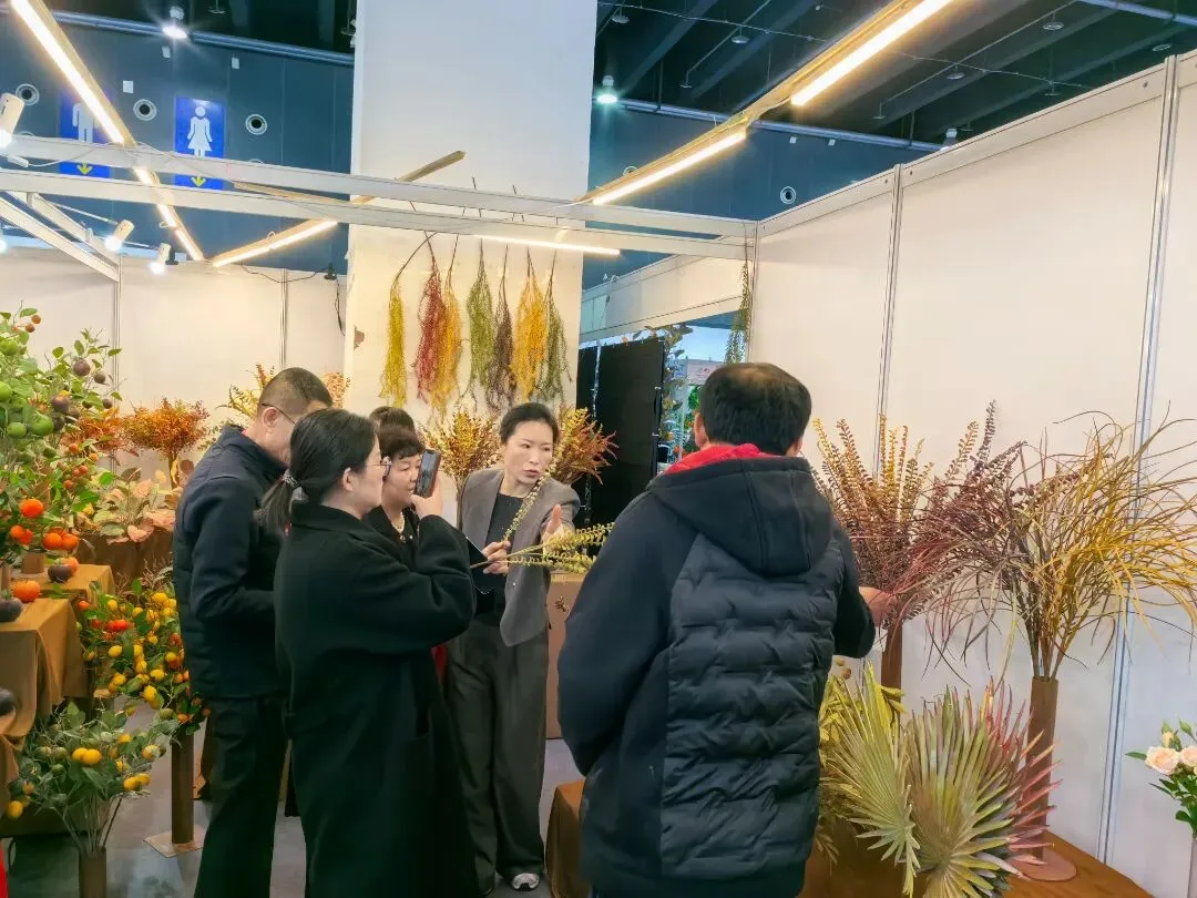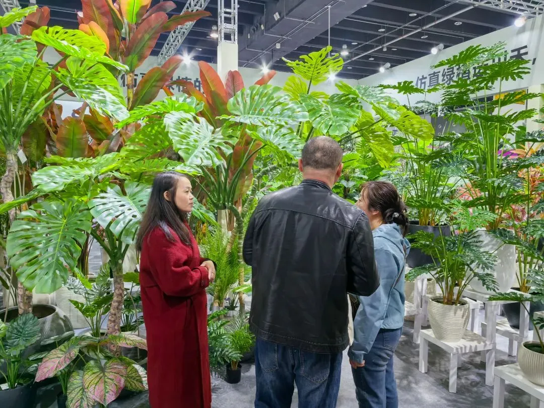 本届展会规模再创新高,展出面积达 11 万平方米,集结 2000 余家优质参展厂企、5000 余个国际标准展位,仿真植物花卉、婚庆道具、美陈行业全产业链群星荟萃、大咖云集,展会现场人气持续火爆,洽谈氛围热烈非凡,处处涌动着蓬勃生机与合作活力。
