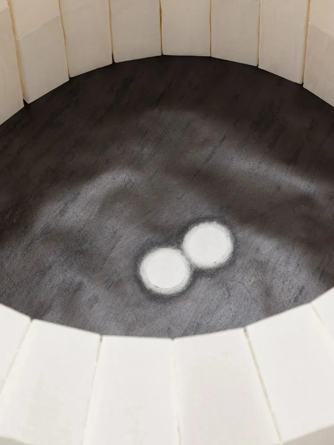 The centerpiece borrows the form of a well. Inside is a graphite drawing of water, providing a poetic mirage.