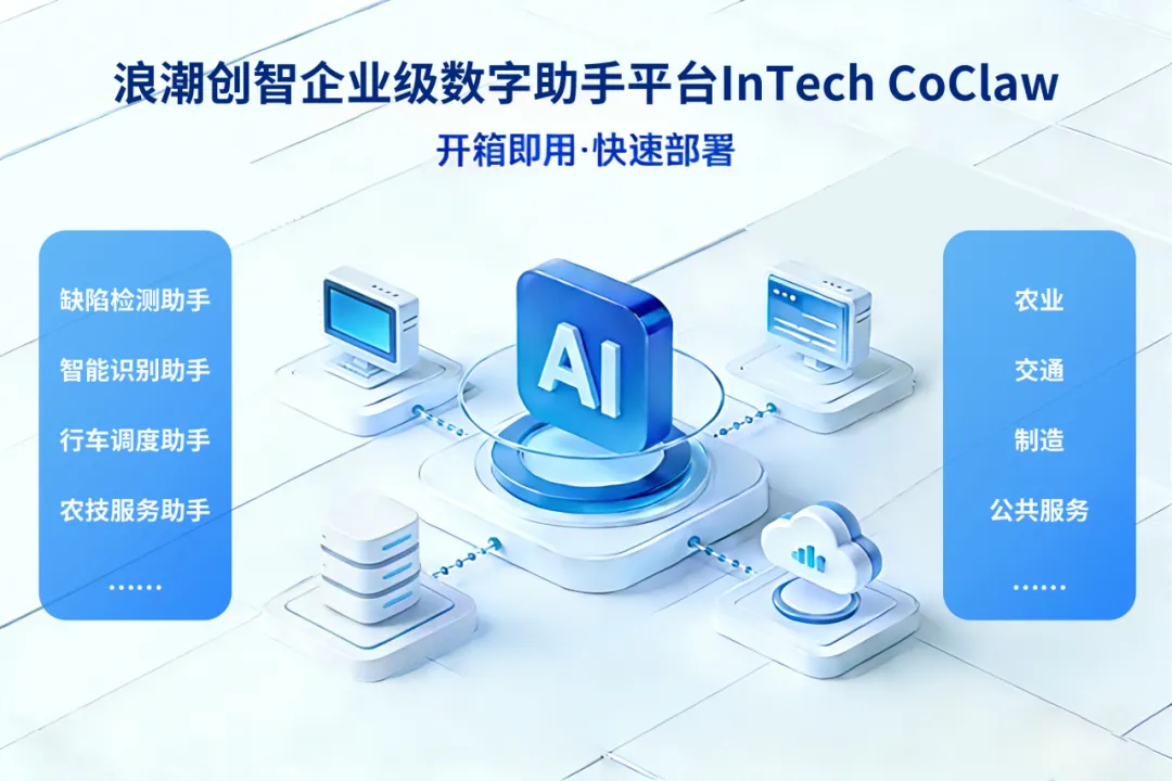 浪潮智慧科技给出的答案是:创智企业级数字助手平台(InTech CoClaw)。该平台聚焦农业、交通、工业、公共服务等关键领域,以“生产+应用”双中心为核心,打造安全可控、行业专属的企业级智能体成长生态,让千行百业真正实现“养虾”无忧。