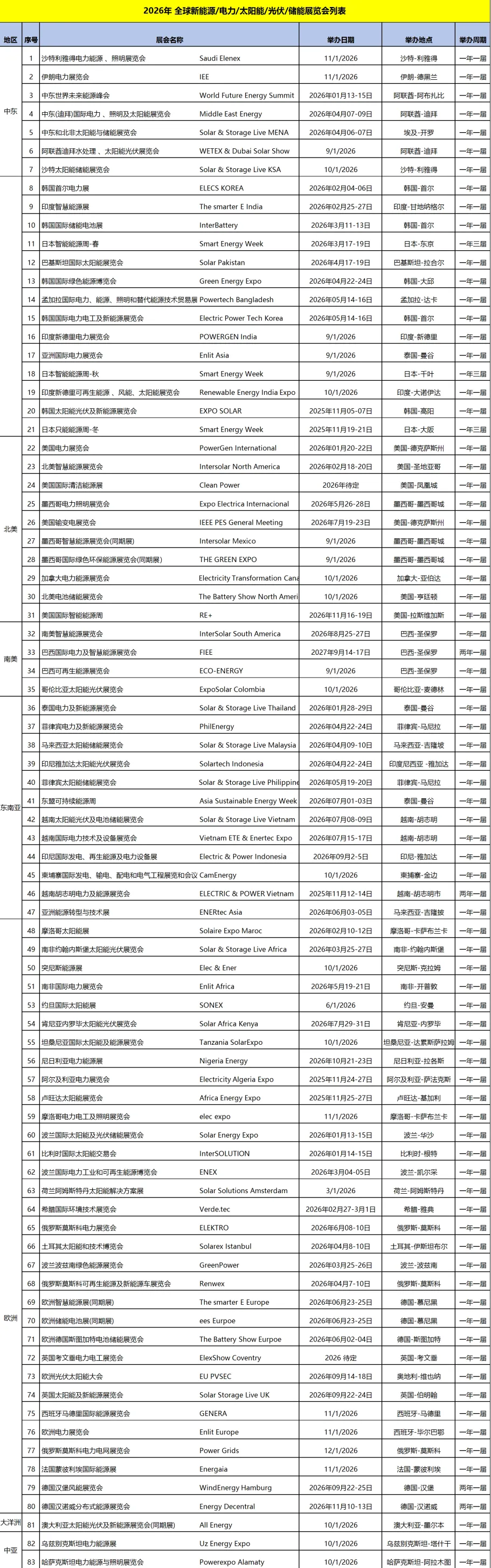 光伏、太阳能展全球计划表